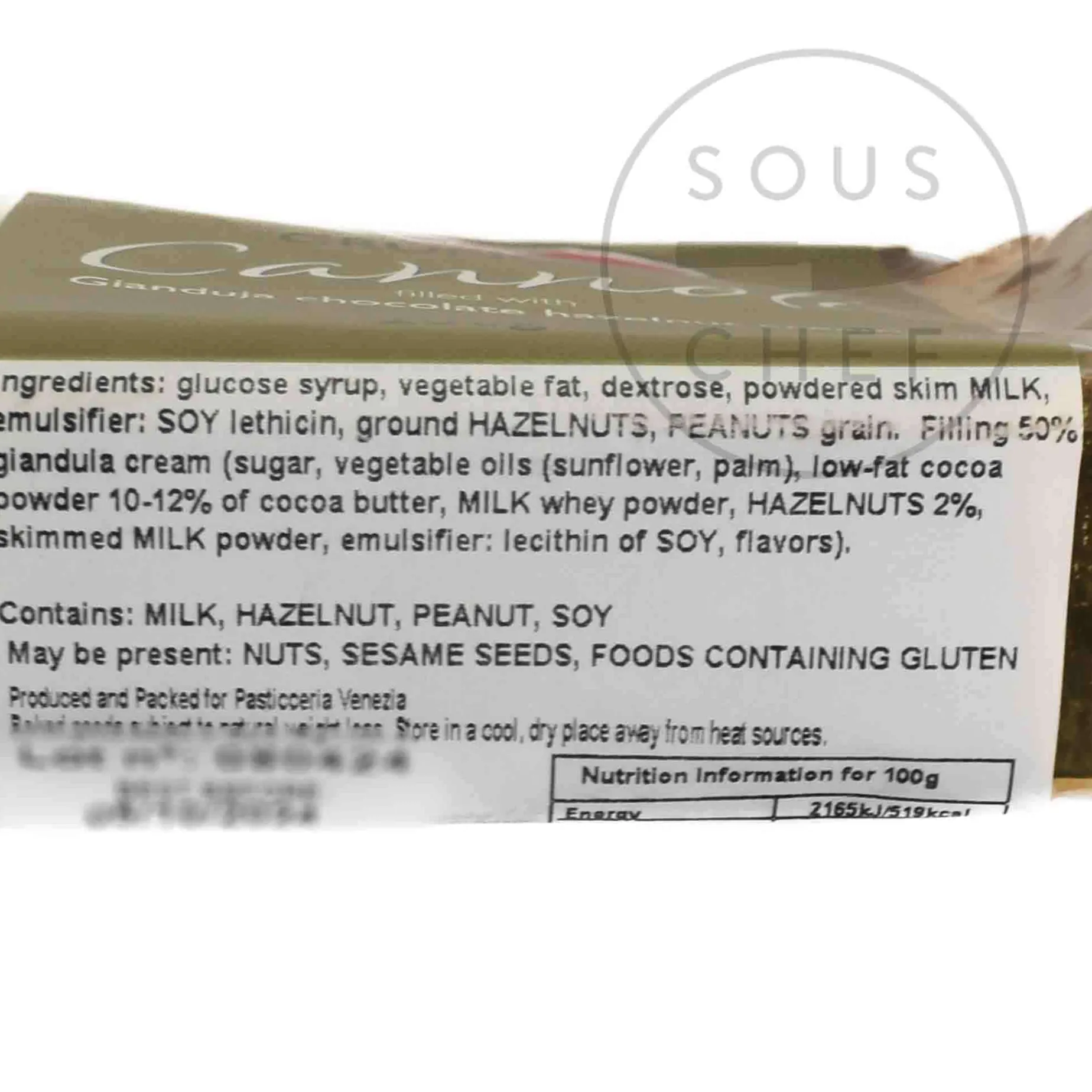 These crunchy Italian cannoli are filled with gianduja cream. Gianduja is a smooth, rich paste made from cocoa and hazelnuts.