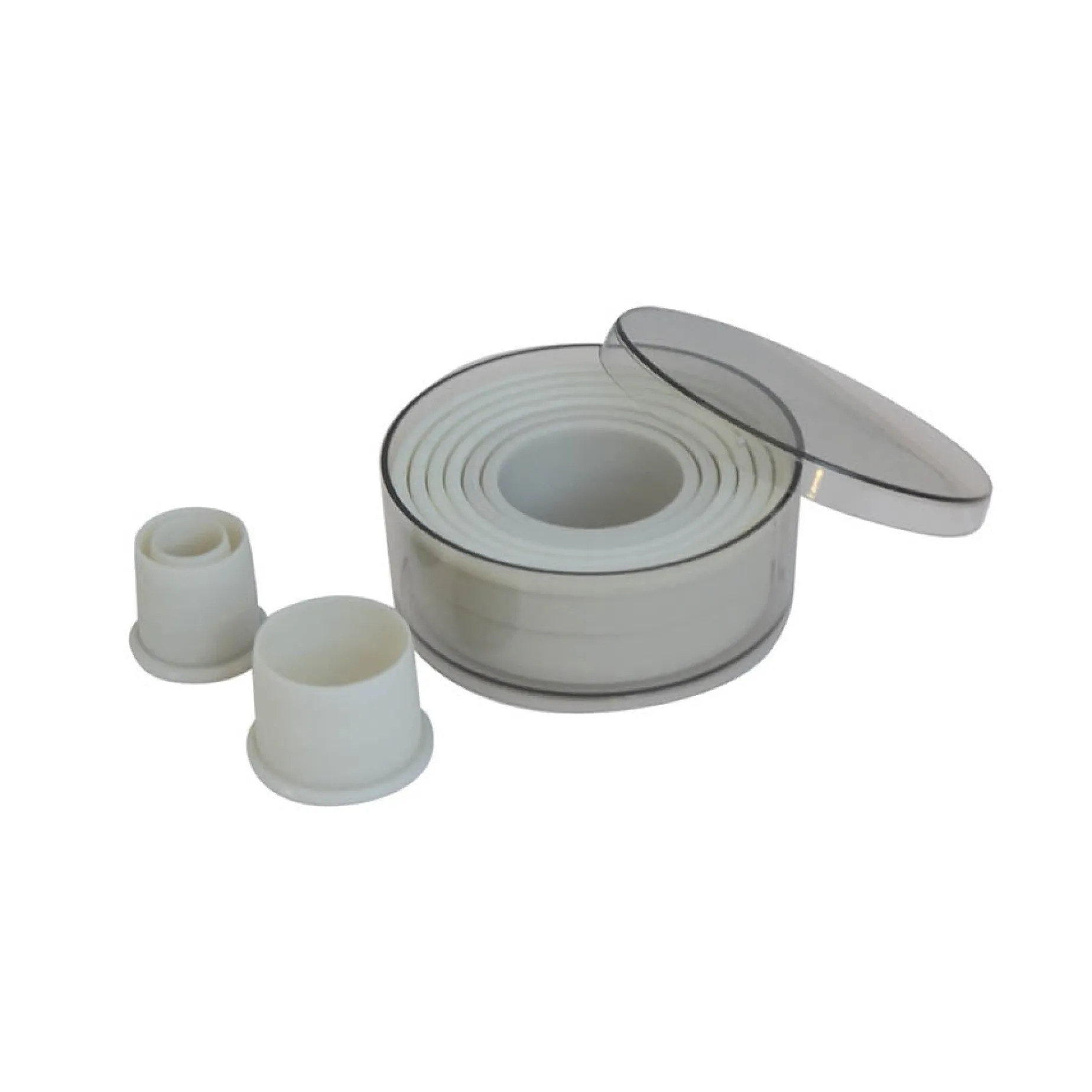 The De Buyer box of 9 smooth round pastry cutters is what every baker needs. Use the smooth cutters to cut biscuits or pastry for lining tart cases. Or cut shapes from fondant icing for decorating cakes.