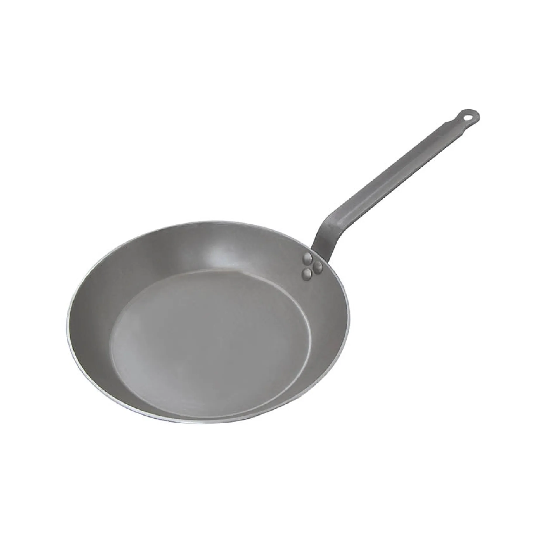 The De Buyer carbon steel frying pan requires proper seasoning to keep it in top condition. Before the first use, wash in hot water and washing up liquid. To season the pan, wipe the inside surface with cooking oil. Pour 5mm of oil into the pan, bring to a high temperature, and then when a smoky-haze appears remove it from the heat and wipe well with kitchen towel. Now the pan is ready to use.