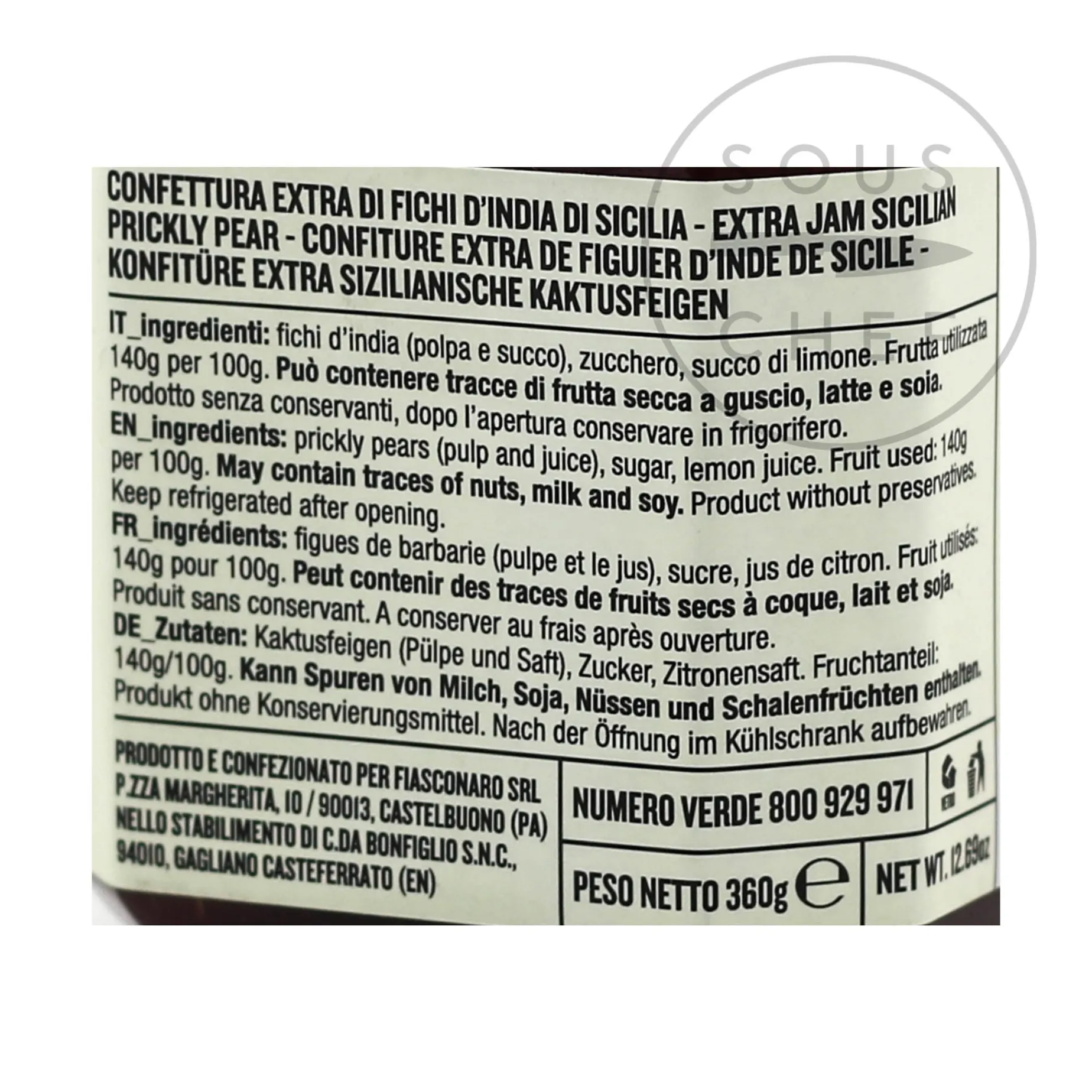 Product formulations and details may change. For the latest ingredients and allergen information always check product packaging prior to consumption. Ingredients: prickly pears (pulp & juice), sugar, lemon juice. Contains 140g of fruit per 100g of final product. May contain traces of nuts, milk and soy.
