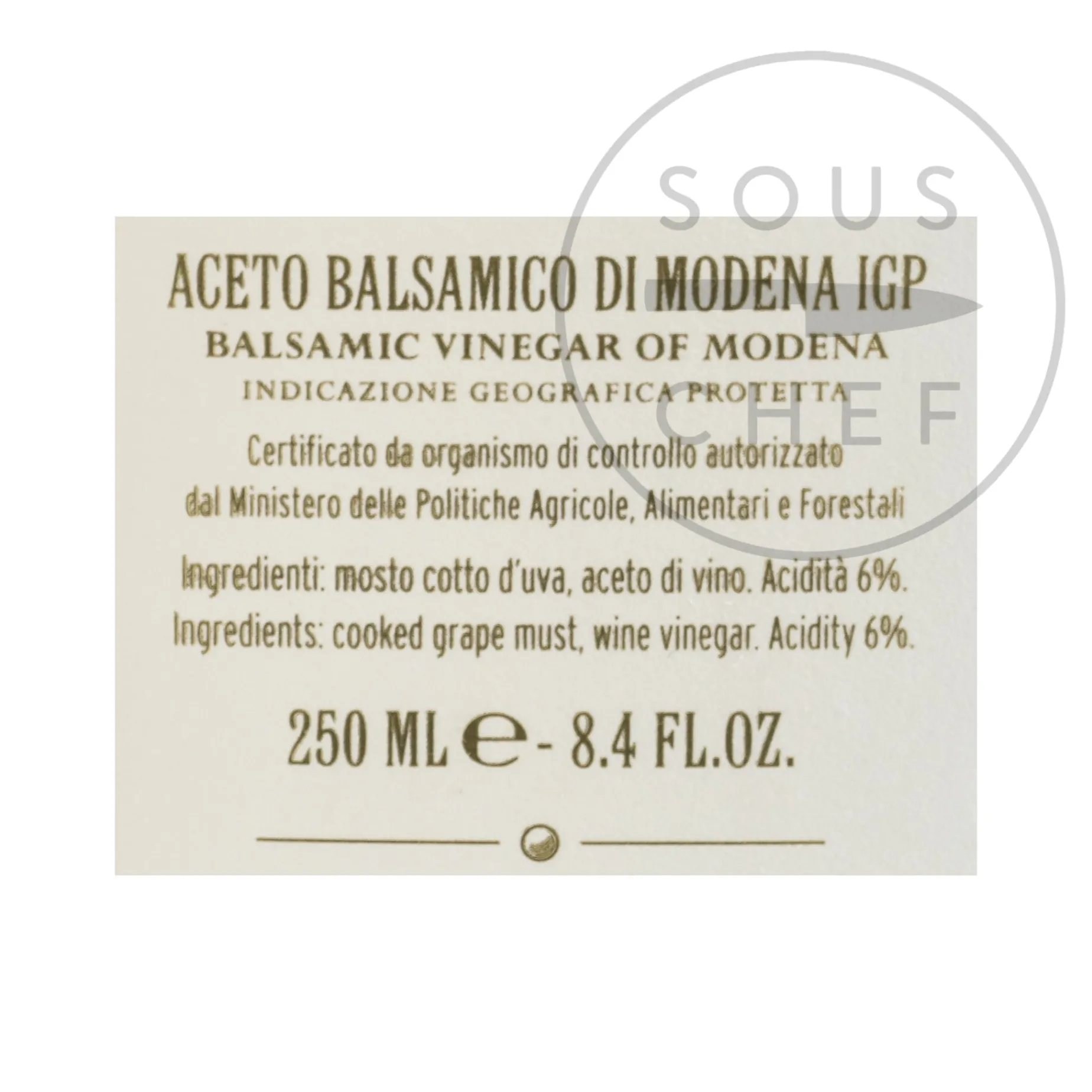 Product formulations and details may change. For the latest ingredients and allergen information always check product packaging prior to consumption. Ingredients: Cooked grape must, wine vinegar.