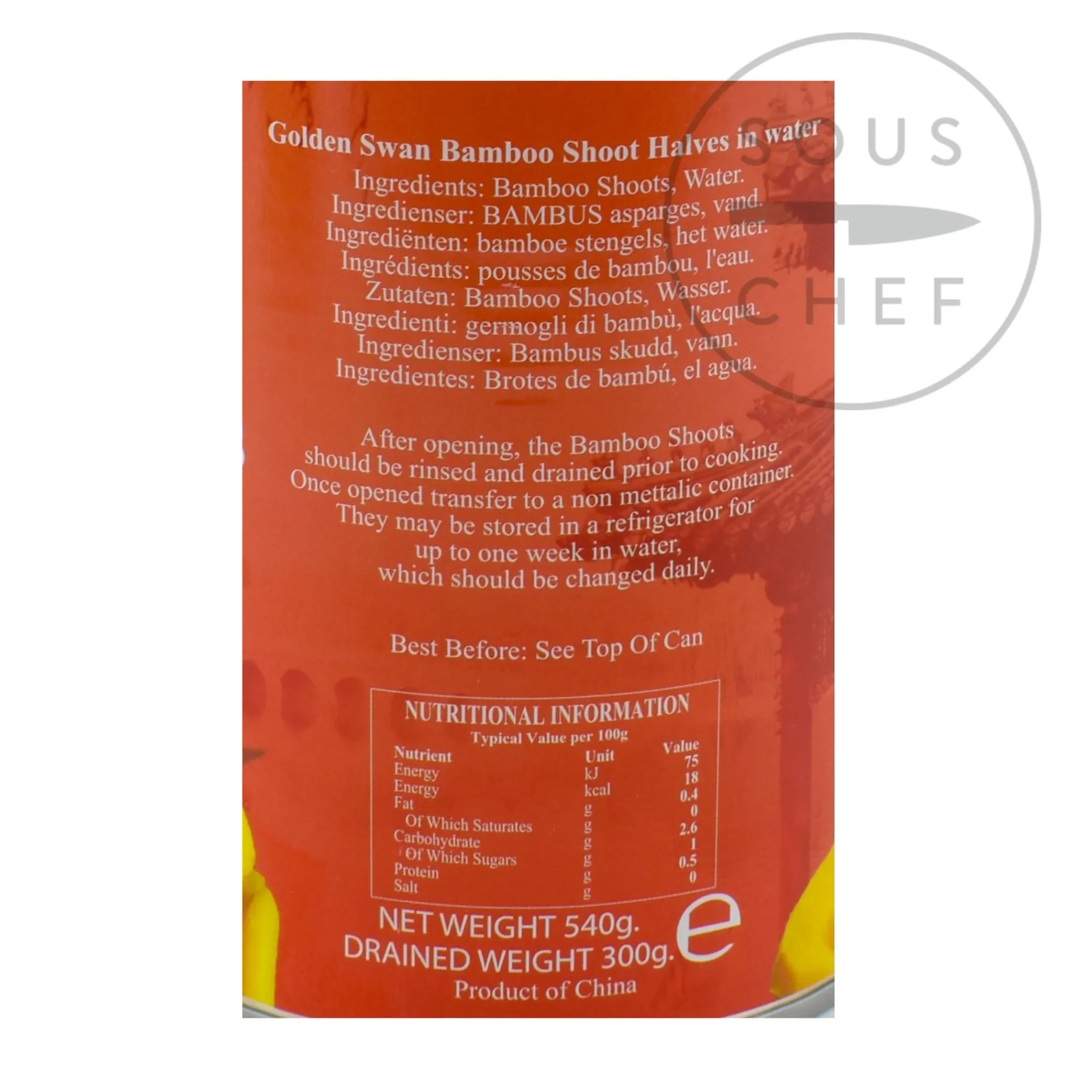 Halved bamboo shoots have a distinctive crunch and a refreshing light nutty flavour. Drain, rinse and slice these halves then use them to add texture to stir-fries, braised Chinese dishes and Thai curries. Fresh bamboo shoots are fiddly to prepare, so a tin of pre-peeled and cleaned bamboo shoots is a very useful store cupboard ingredient.
