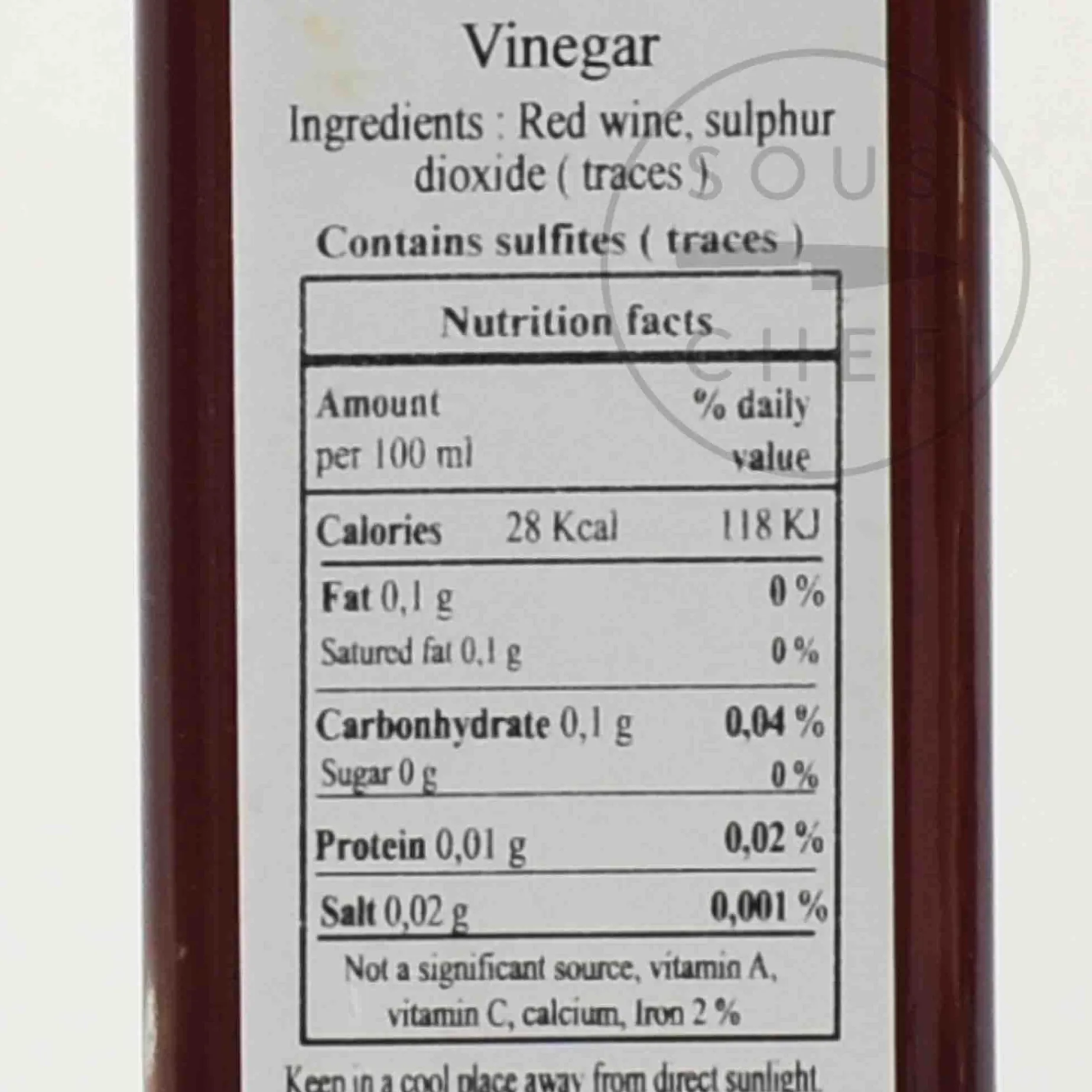 Product formulations and details may change. For the latest ingredients and allergen information always check product packaging prior to consumption. Ingredients: 100% red wine vinegar. Contains sulphites.