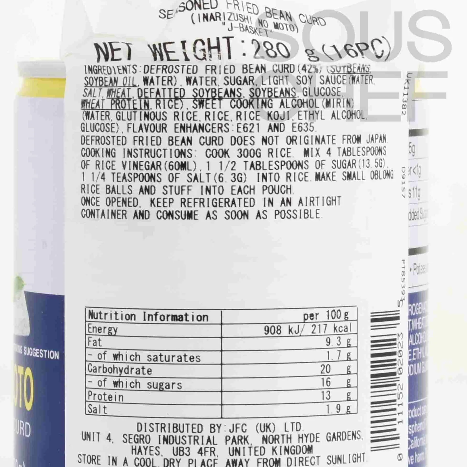 Product formulations and details may change. For the latest ingredients and allergen information always check product packaging prior to consumption. Ingredients: Defrosted fried bean curd (42%) (soybeans, soybean oil, water), water, sugar, light soy sauce (water, salt, wheat, defatted soybeans, soybeans, glucose, wheat protein, rice), sweet cooking alcohol (mirin) (water, glucose rice, rice, rice koji, ethyl alcohol, glucose), flavour enhancers: e621 and e635.