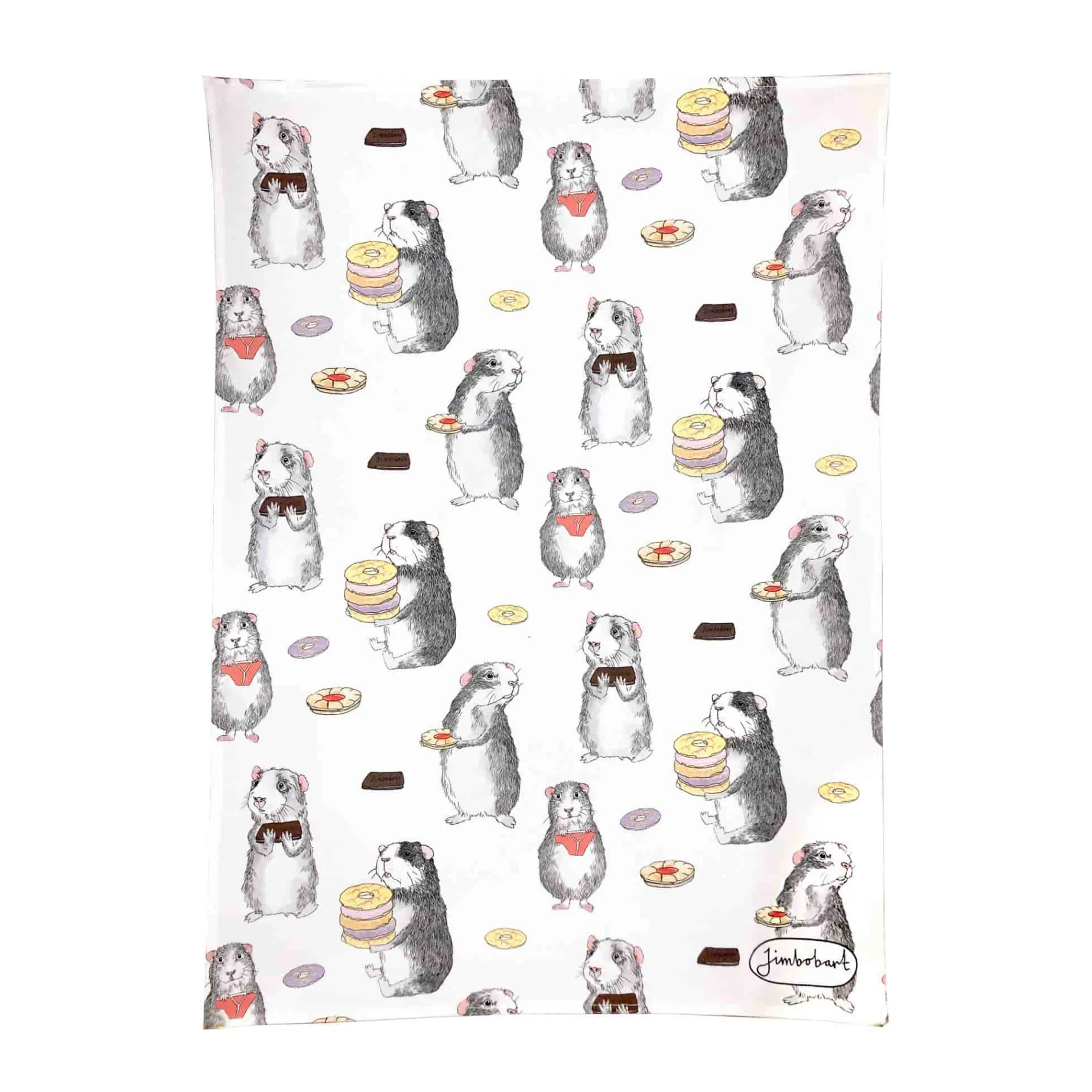 Use the guinea pig biscuits tea towel to dry your dishes the quirky way. Made from 100% organic cotton, this funky tea towel will make light work of doing the drying, from pancake plates to negroni glasses. Each tea towel is digitally printed with a fun pattern – there’s biscuit-eating guinea pigs and furry animals holding underpants.