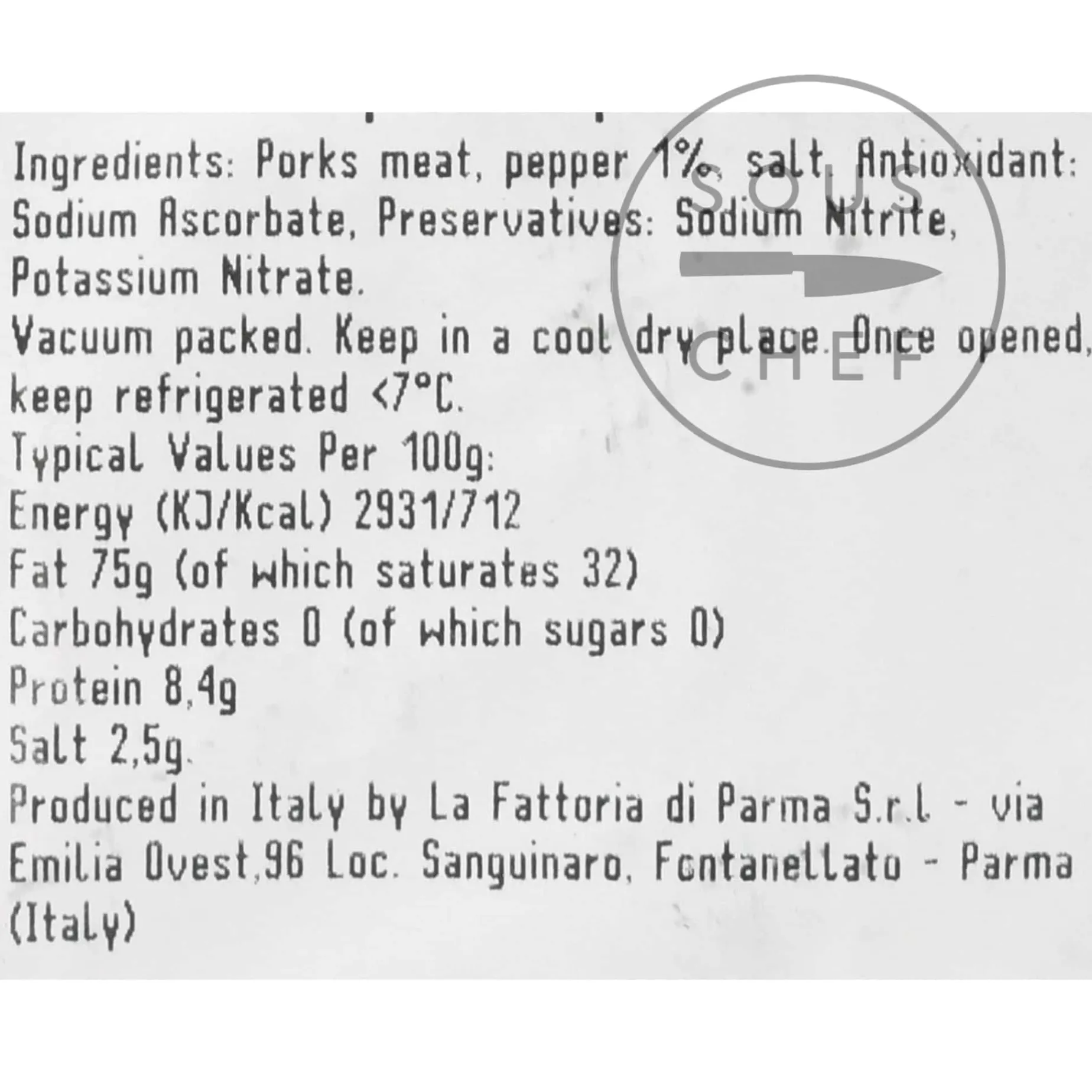 Storage: vacuum packed. Keep in a cool dry place. Once opened, keep refrigerated below 7°C and consume within 8-10 days.
