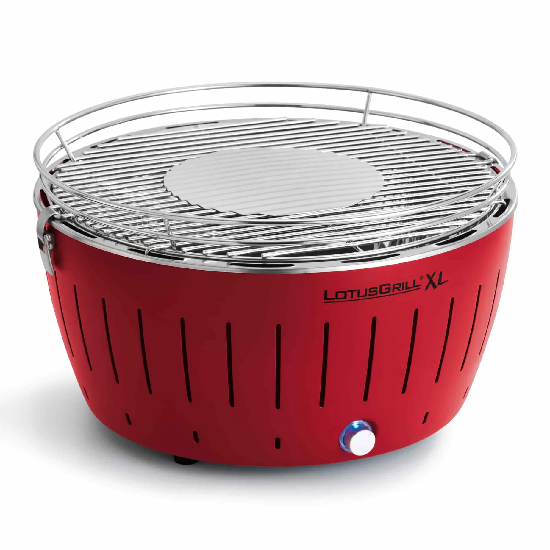 The Lotus Grill XL in red gives you the chargrilled flavours of a coal BBQ – without the smoke! The Lotus grill is a compact and portable BBQ that is ready to go in under 5 minutes, virtually smokeless! This XL-sized grill feeds up to 10 people, as this generous grill has a surface 60% larger that a standard barbecue. Ideal for a feast of sausages, burger and more, this is the perfect BBQ for entertaining family and friends.
