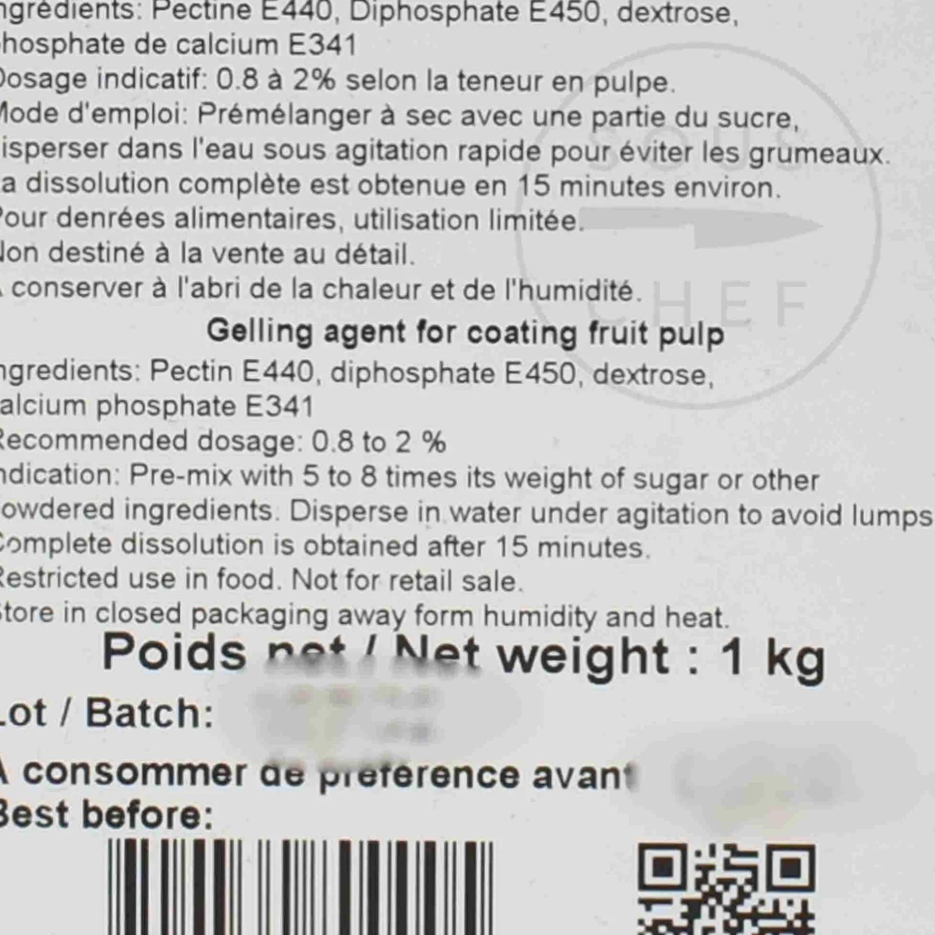 Louis Francois Pectine NH Nappage is a powdered gelling agent for glazes and fillings. This pectin is ideal for professional patisserie. It helps to achieve the perfect texture for toppings, tart fillings and coatings.