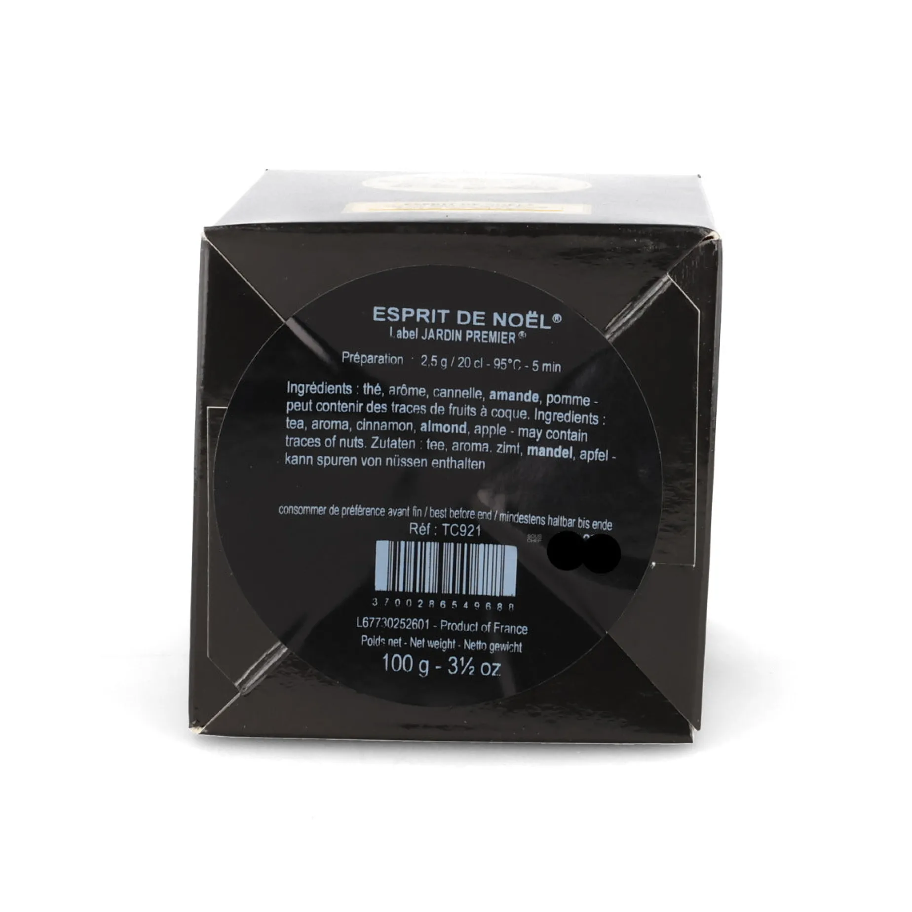 Product formulations and details may change. For the latest ingredients and allergen information always check product packaging prior to consumption. Ingredients: Pure black tea leaves, aroma, cinnamon, vanilla pieces, almond, apple