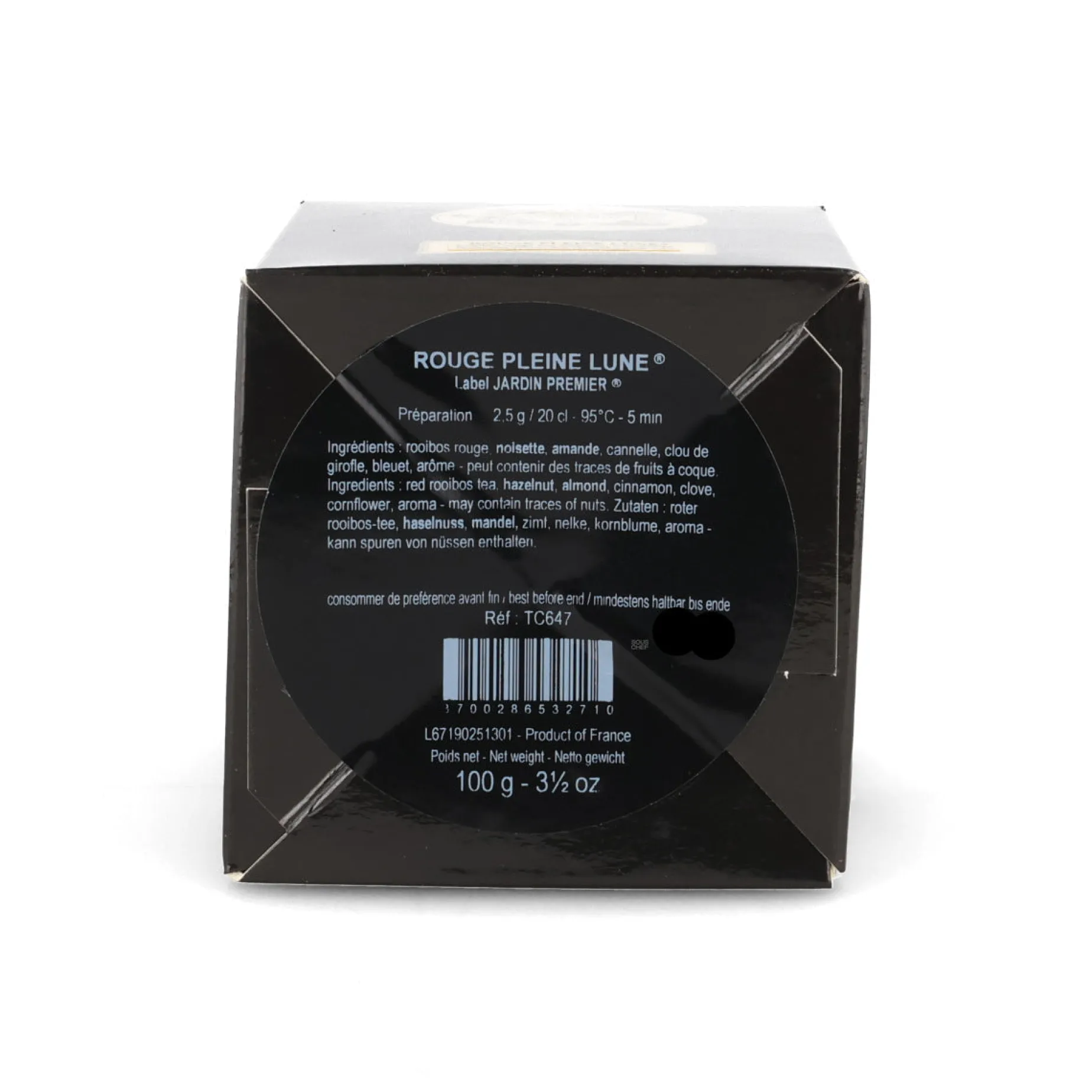 Rouge Pleine Lune pairs red rooibos with nuts, spices and cornflower petals. It’s velvety smooth with notes of almond and tropical fruit. Savour it slowly to discover notes of cinnamon and clove.