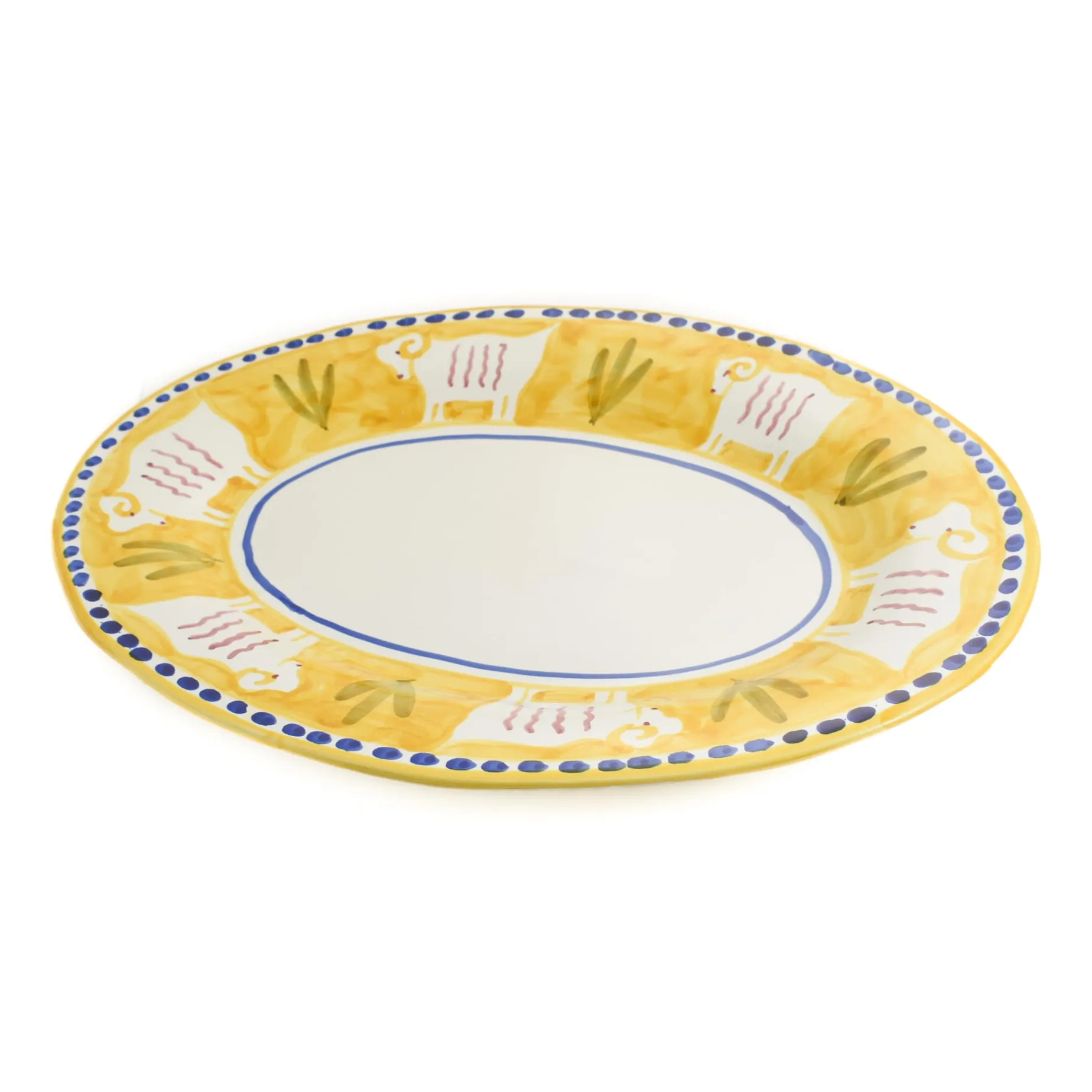The yellow goat serving dish is perfect for parties and family meals. Made from glazed ceramic, each dish has a delicate spotted rim. Every detail is hand-painted, so no two dishes are the same.