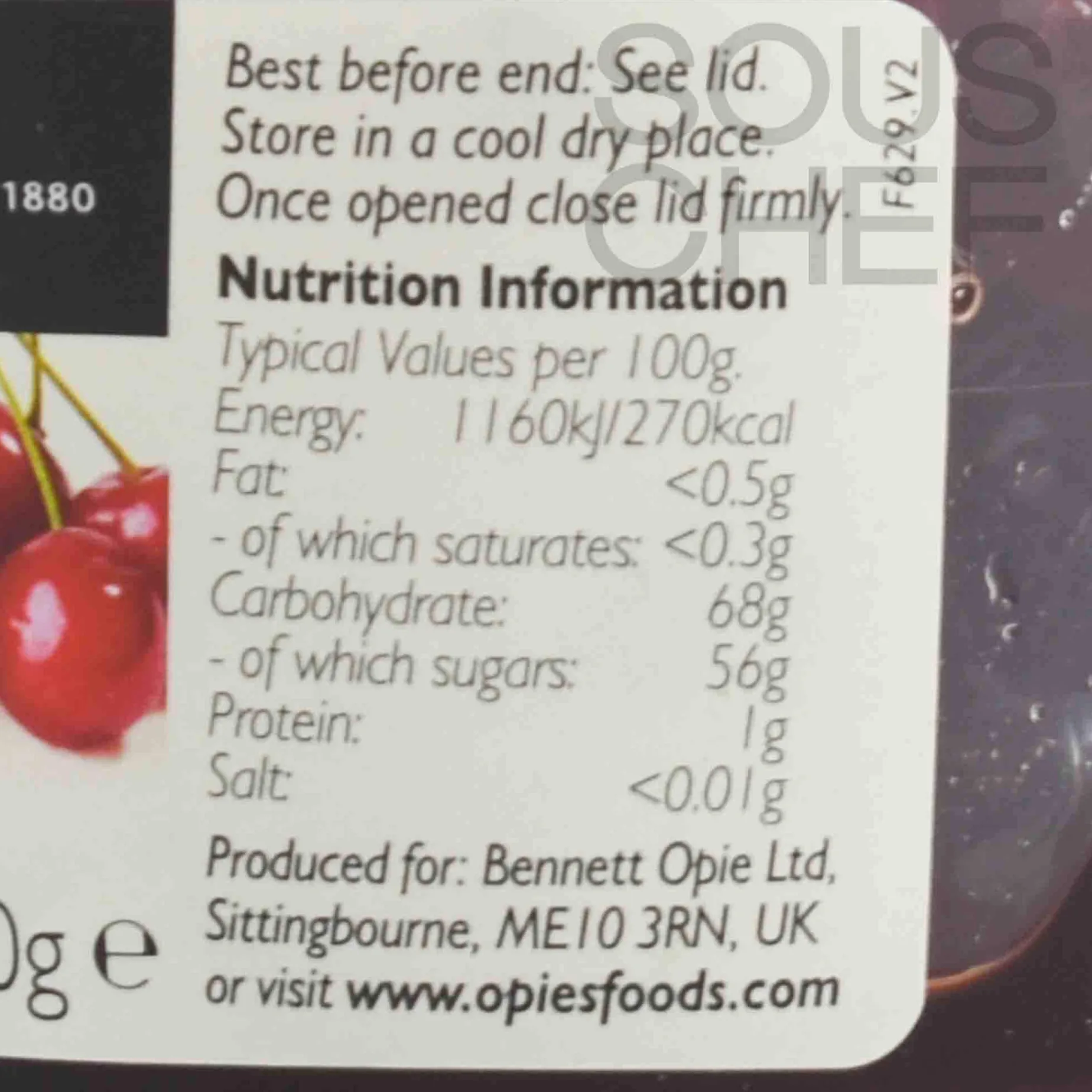 Product formulations and details may change. For the latest ingredients and allergen information always check product packaging prior to consumption. Ingredients: Cherries, glucose-fructose syrup, fruit and vegetable concentrate, citric acid e330