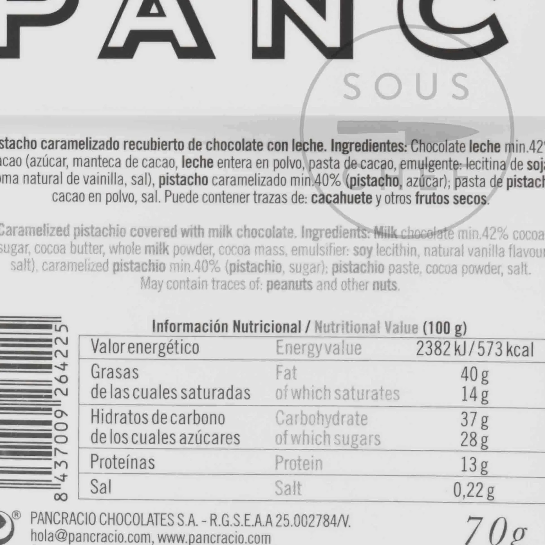 Product formulations and details may change. For the latest ingredients and allergen information always check product packaging prior to consumption. Ingredients: milk chocolate min. 42% cocoa (sugar, cocoa butter, whole milk powder, cocoa mass, emulsifier: soy lecithin, natural vanilla flavour, salt), caramelised pistachio min 40% (pistachio, sugar); pistachio paste, cocoa powder, salt. ,