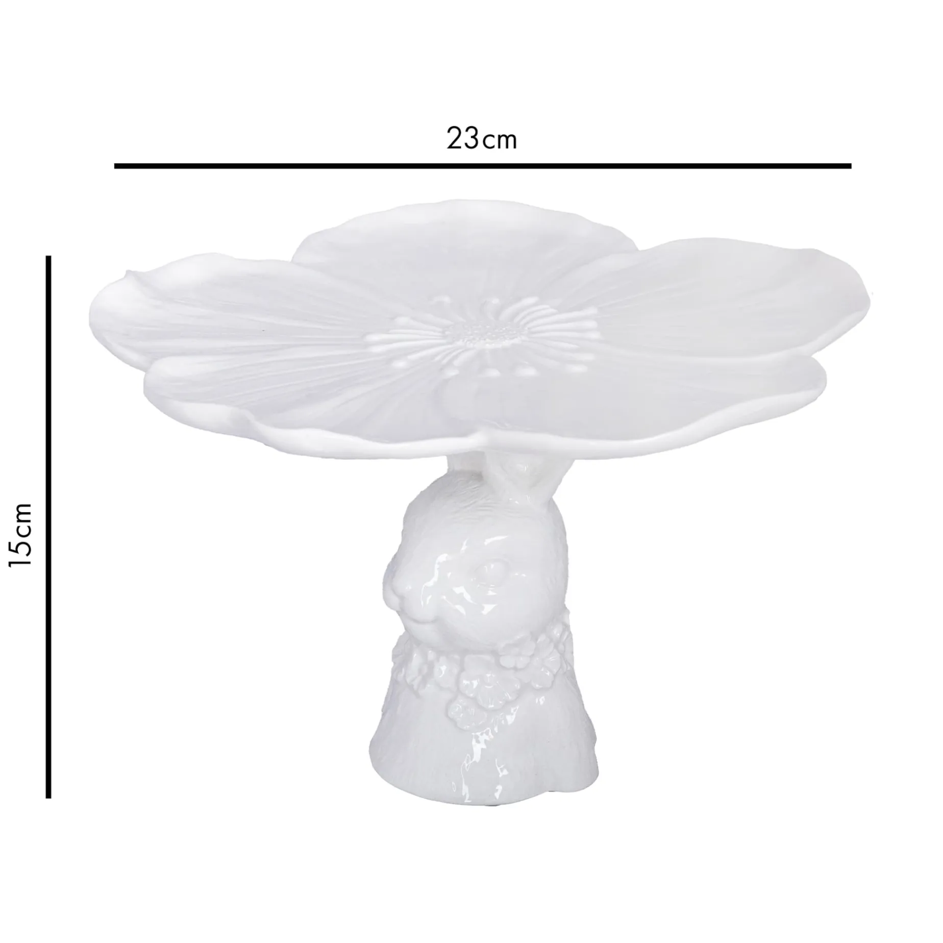Host afternoon tea in style with this bunny cake stand. It features a flower-shaped plate resting on the ears of a white rabbit. It’s beautifully detailed, right down to the rabbit’s fur.