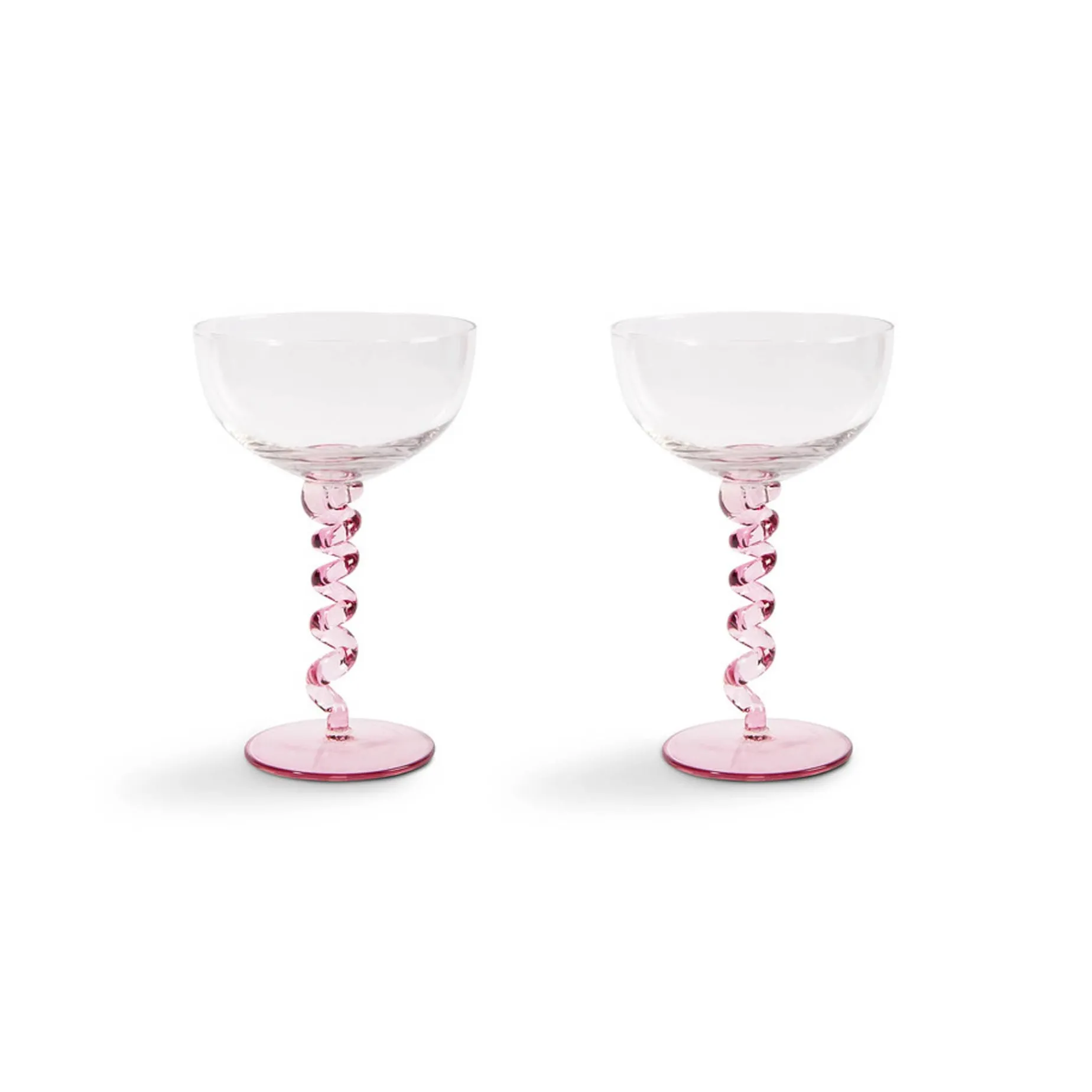 These pretty pink coupe glasses are ideal for celebrating a special moment with a friend or loved one. Whatever the occasion, pop the cork and fill these elegant glasses with chilled Champagne or an English sparkling wine. They’re beautiful to look at, with a clear glass bowl and pale pink spiral glass stem.