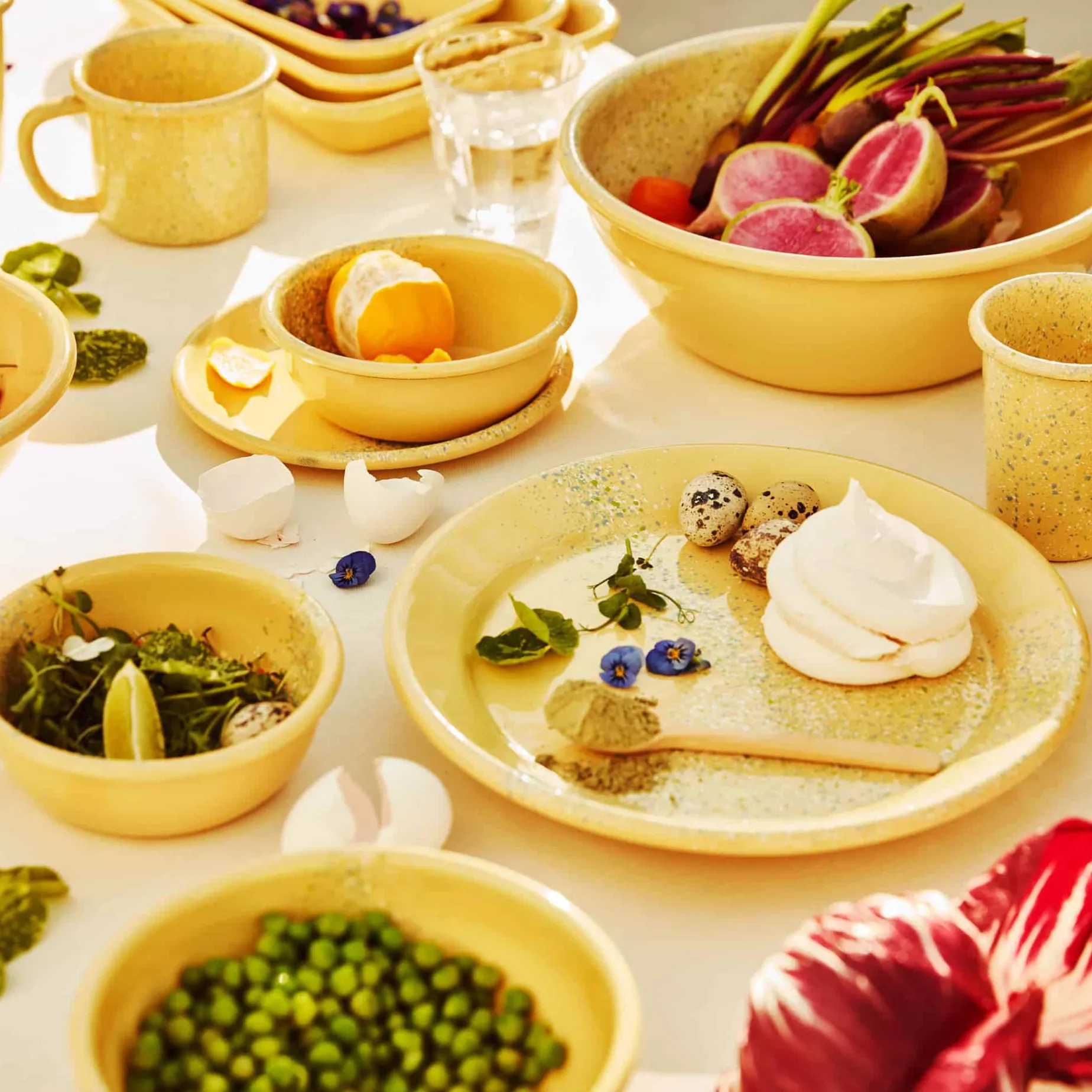 This durable and resilient enamelware can be used both outside and indoors, and the colours will stay bright and vibrant (even in the dishwasher), as they’ve been heated to 800°C during production.