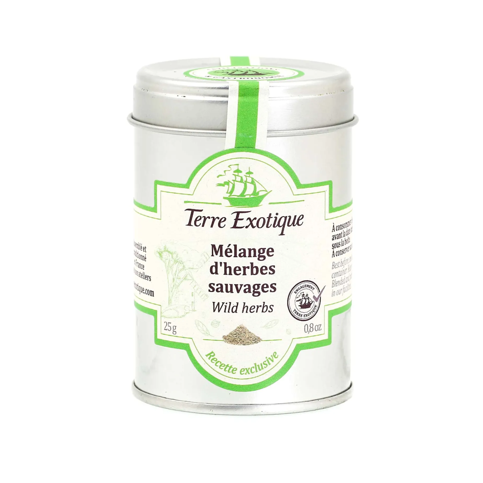 Terre Exotique’s wild herbs blend is an aromatic mix for Mediterranean cooking. A blend of basil, thyme, rosemary, oregano and marjoram, this seasoning is excellent sprinkled over moussaka, sweet tomato salads or baked feta.