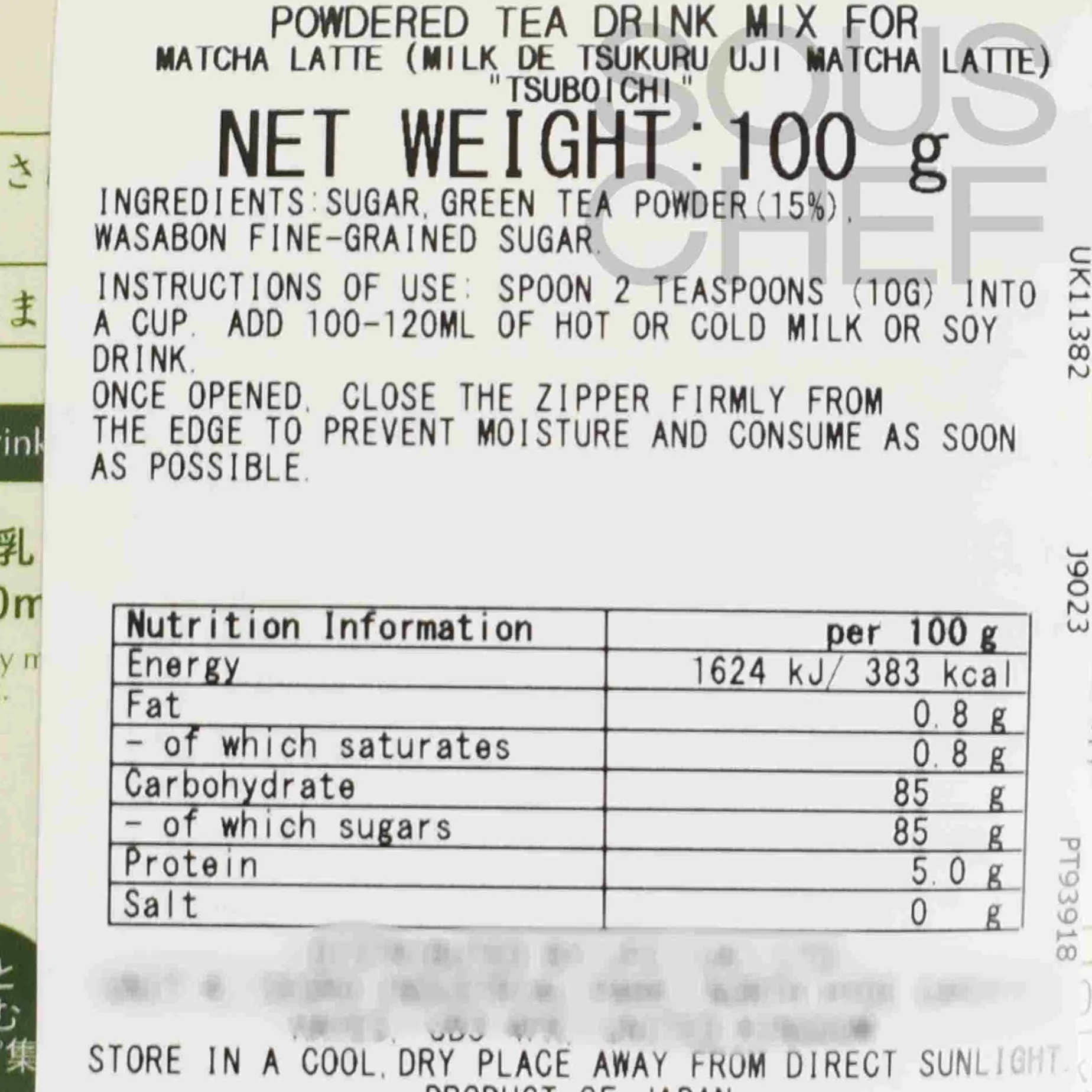 The powder is sweetened with two different types of sugar. The mild sweetness complements the earthy, vegetal taste of matcha. The drink mix is dairy-free and free from additives.