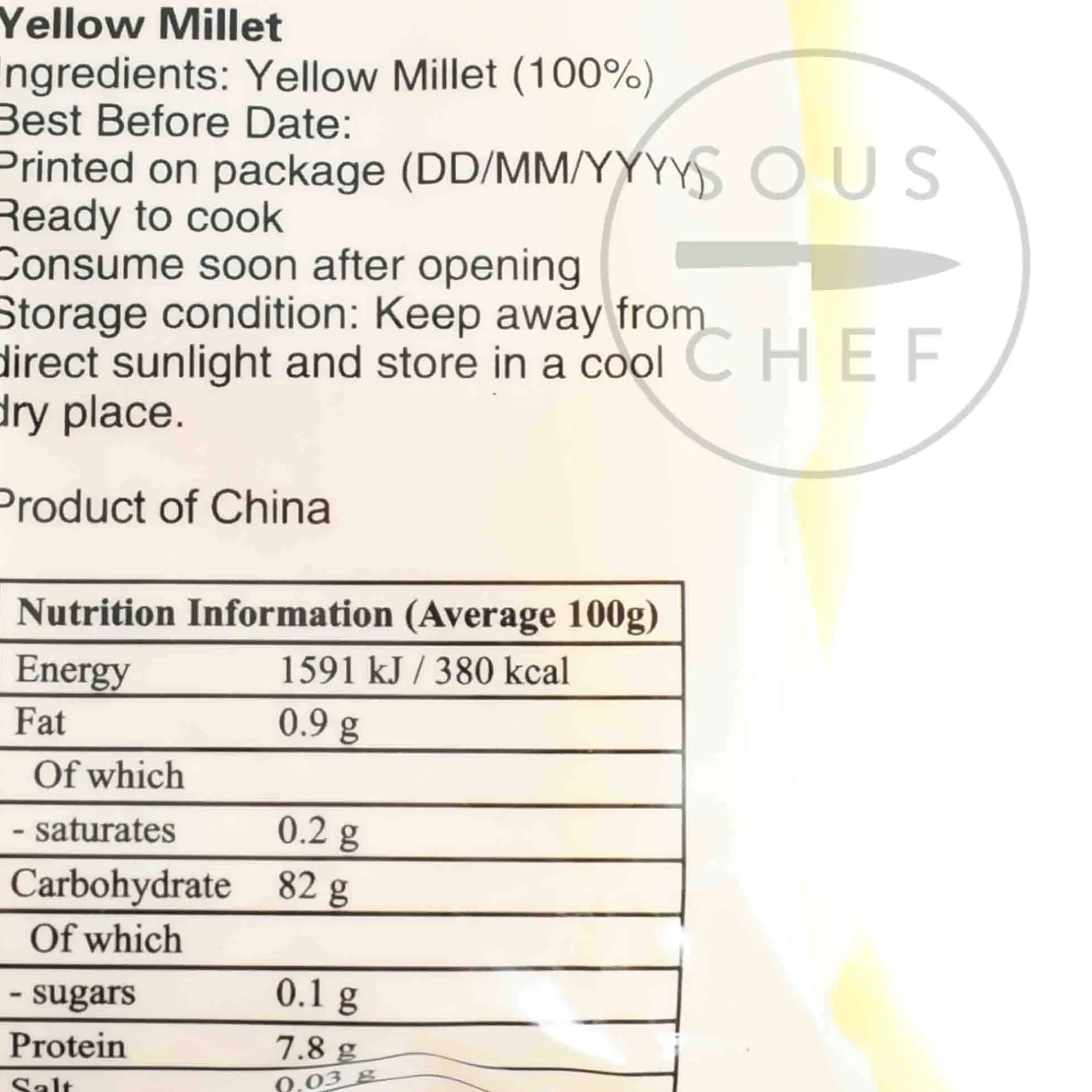Product formulations and details may change. For the latest ingredients and allergen information always check product packaging prior to consumption. Ingredients: Yellow millet (100%)