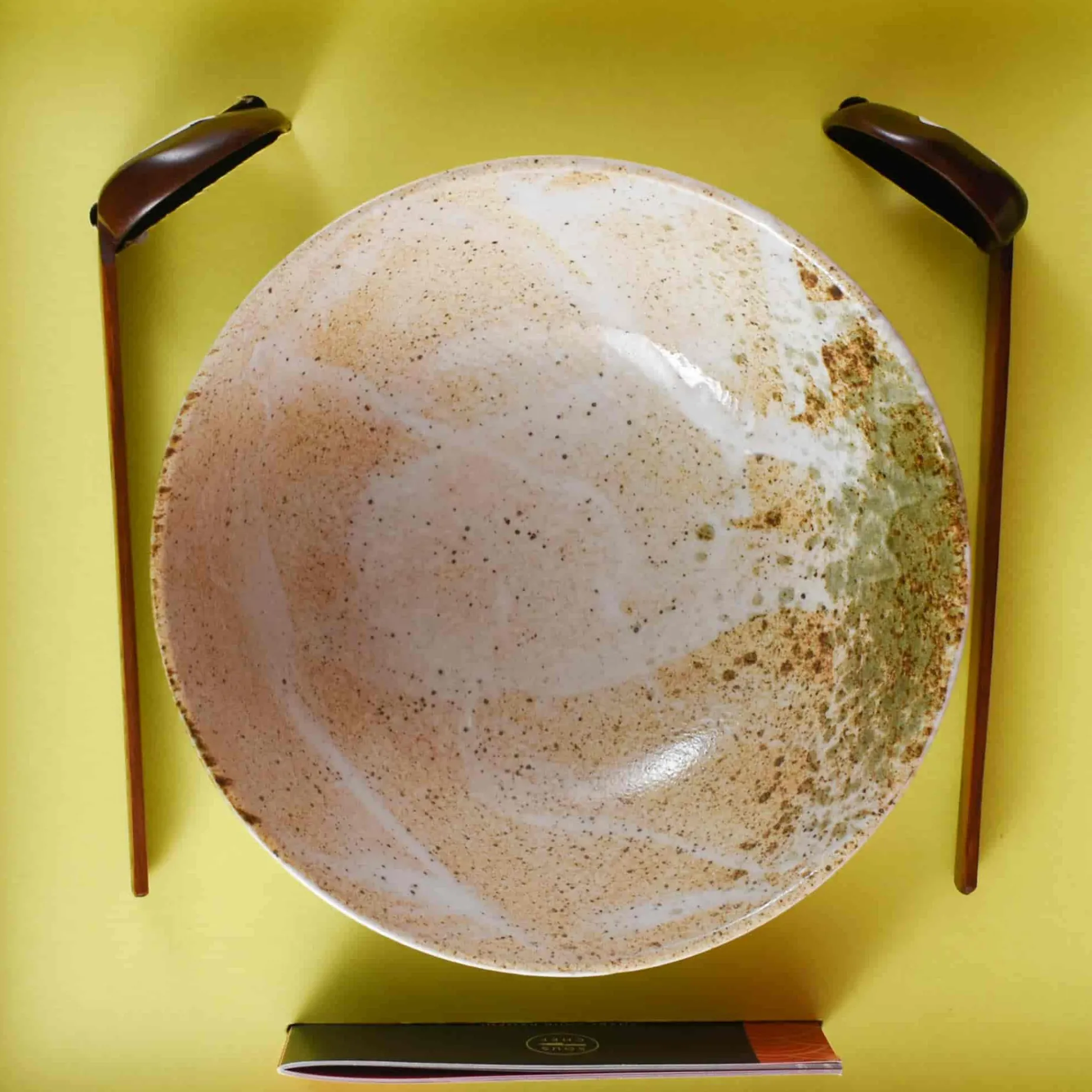 The speckled cream stoneware of the Yukishino ramen bowl set will make any dish stand out.