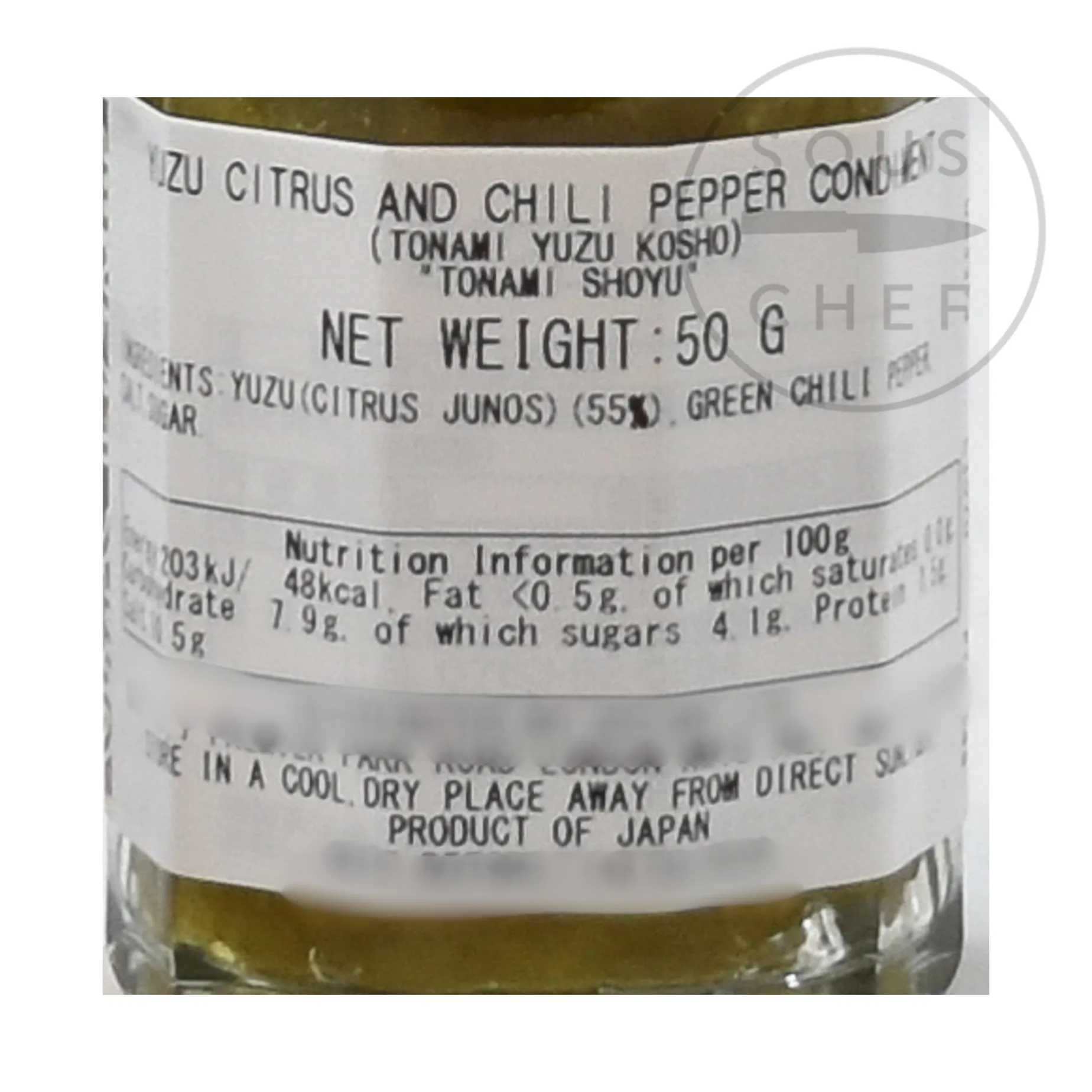 Product formulations and details may change. For the latest ingredients and allergen information always check product packaging prior to consumption. Ingredients: Yuzu (citrus junos), green chilli pepper (42%), salt, sugar.