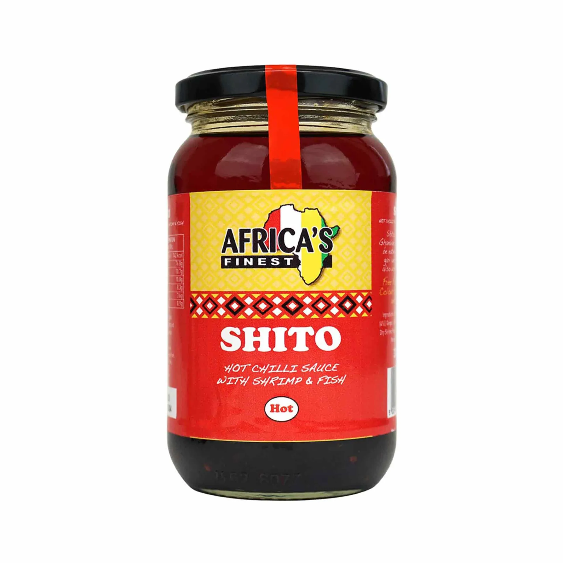 Africa’s Finest shito hot sauce adds a spicy kick to your fish and meat dishes. Shito (meaning pepper in Ga) hot pepper sauce has a distinct smoky flavour from the addition of smoked shrimp, and fragrance from rosemary. You can use this versatile sauce as a marinade or finishing sauce. Use this hot shito sauce as a marinade for chicken, beef or lamb, or stir a little of the sauce through rice.