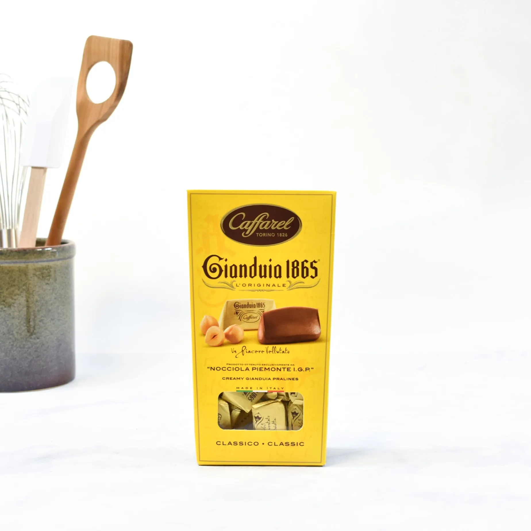Caffarel Gianduia, or gianduja, ballotin are the original Italian cocoa & hazelnut treats. ‘Gianduia 1865’ made Turin’s chocolate-making culture known to the world, and the golden pyramids are still one of the most popular and recognisable chocolates in Italy today.