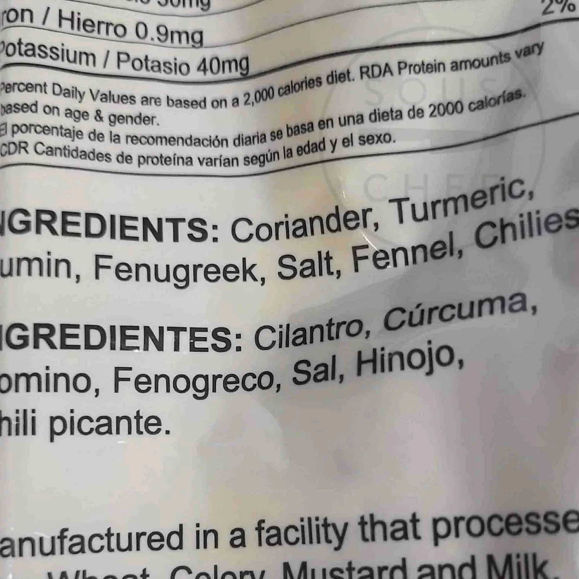 Product formulations and details may change. For the latest ingredients and allergen information always check product packaging prior to consumption. Ingredients: Coriander, Turmeric, Cumin, Fenugreek, Salt, Fennel, Chilies