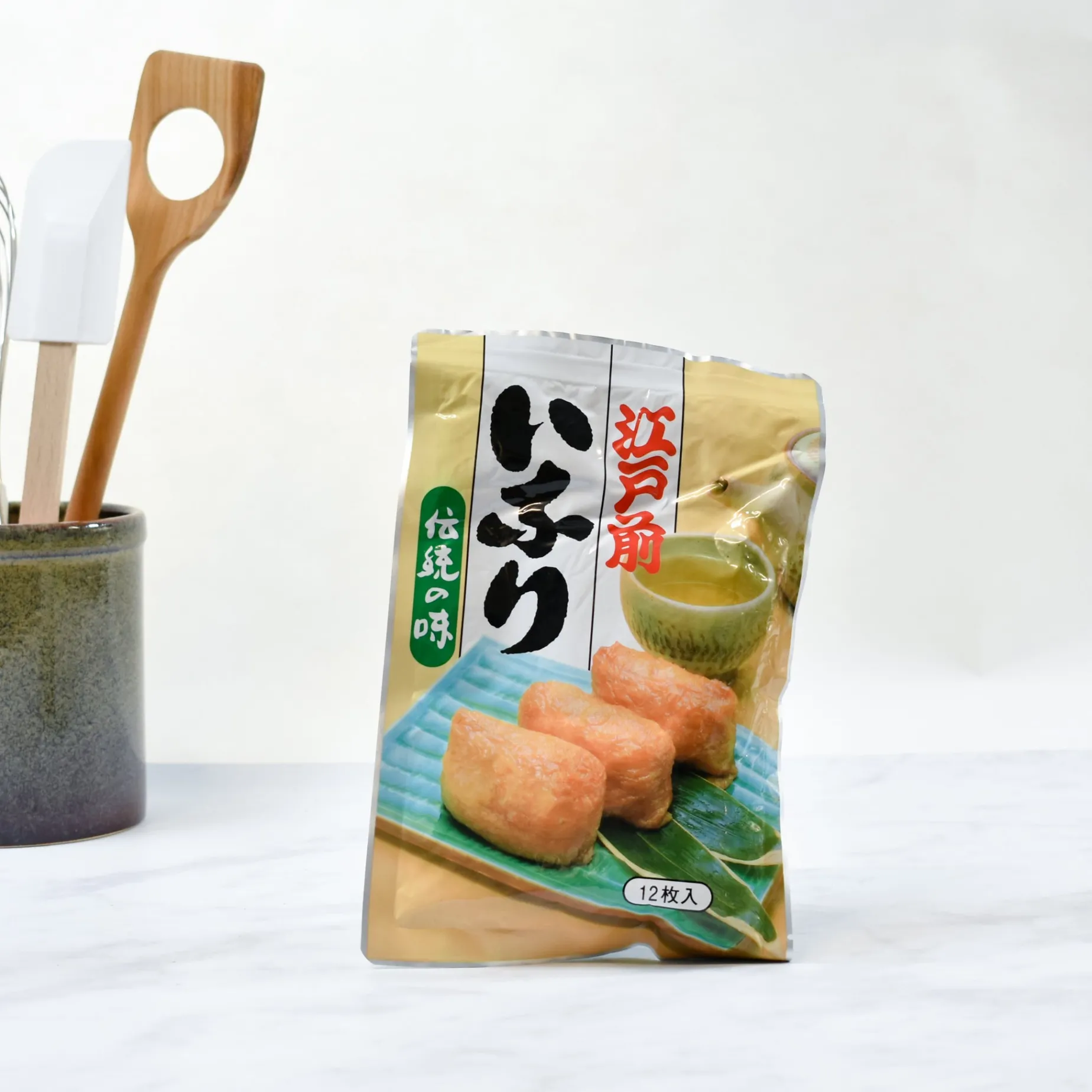 This packet contains ten sheets of pre-cooked tofu, ready to be stuffed and turned into the famous vegetarian-friendly, inari sushi. The strips of bean curd are dressed in soy sauce and mirin, giving them a slightly sweet, delicate flavour before they are deep-fried.