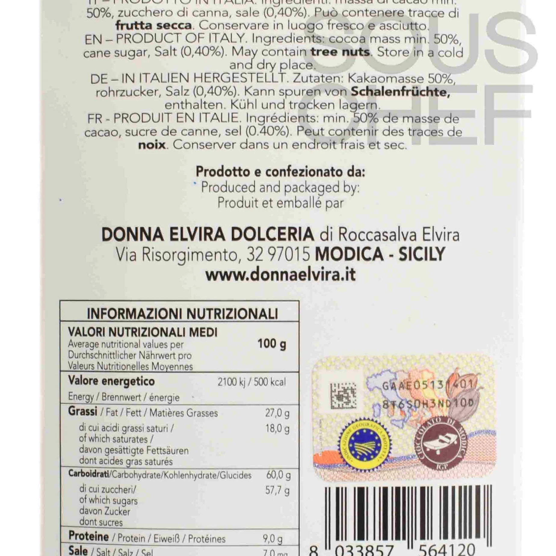 Modican chocolate is the first in Europe to receive the PGI mark (Protected Geographical Indication). PGI certification is awarded to products with a unique quality linked to their geographical origin.