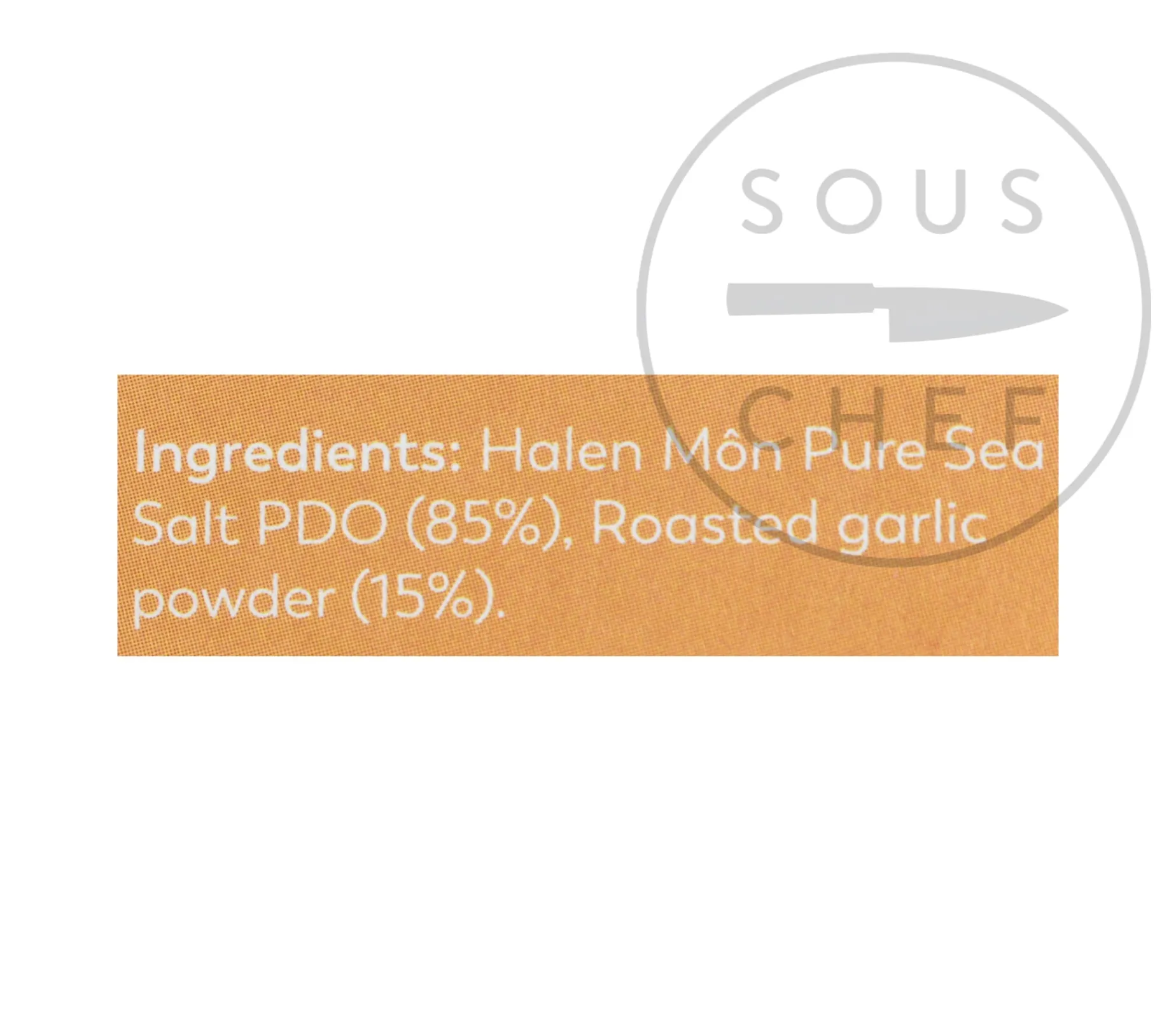 Product formulations and details may change. For the latest ingredients and allergen information always check product packaging prior to consumption. Ingredients: Halen Môn Pure Sea Salt PDO (85%), roasted garlic powder (15%)