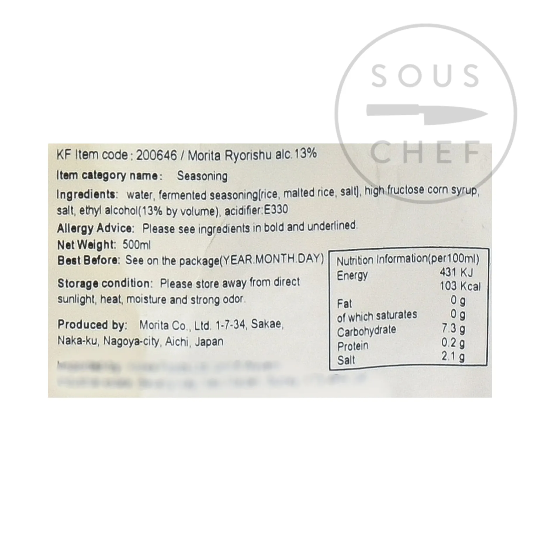Product formulations and details may change. For the latest ingredients and allergen information always check product packaging prior to consumption. Ingredients: water, fermented seasoning (rice, malted rice, salt), high fructose corn syrup, salt, ethyl alcohol (13% by volume), acidifier: E330. Alcohol percentage 13%.