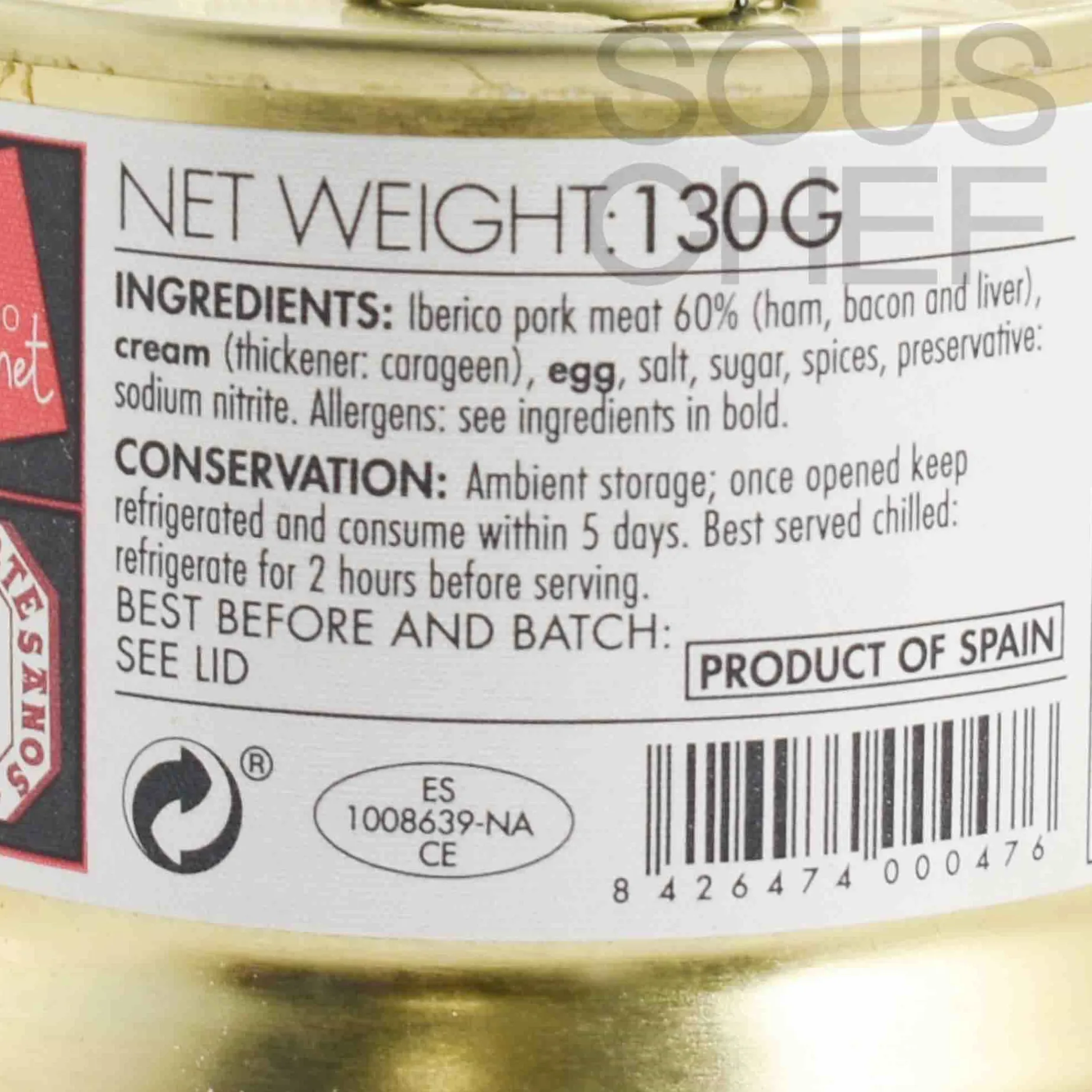 Product formulations and details may change. For the latest ingredients and allergen information always check product packaging prior to consumption. Ingredients: Iberico pork meat 60% (ham, bacon & liver), cream (thickener: carageen), egg, salt, sugar, spices, preservative: sodium nitrite.