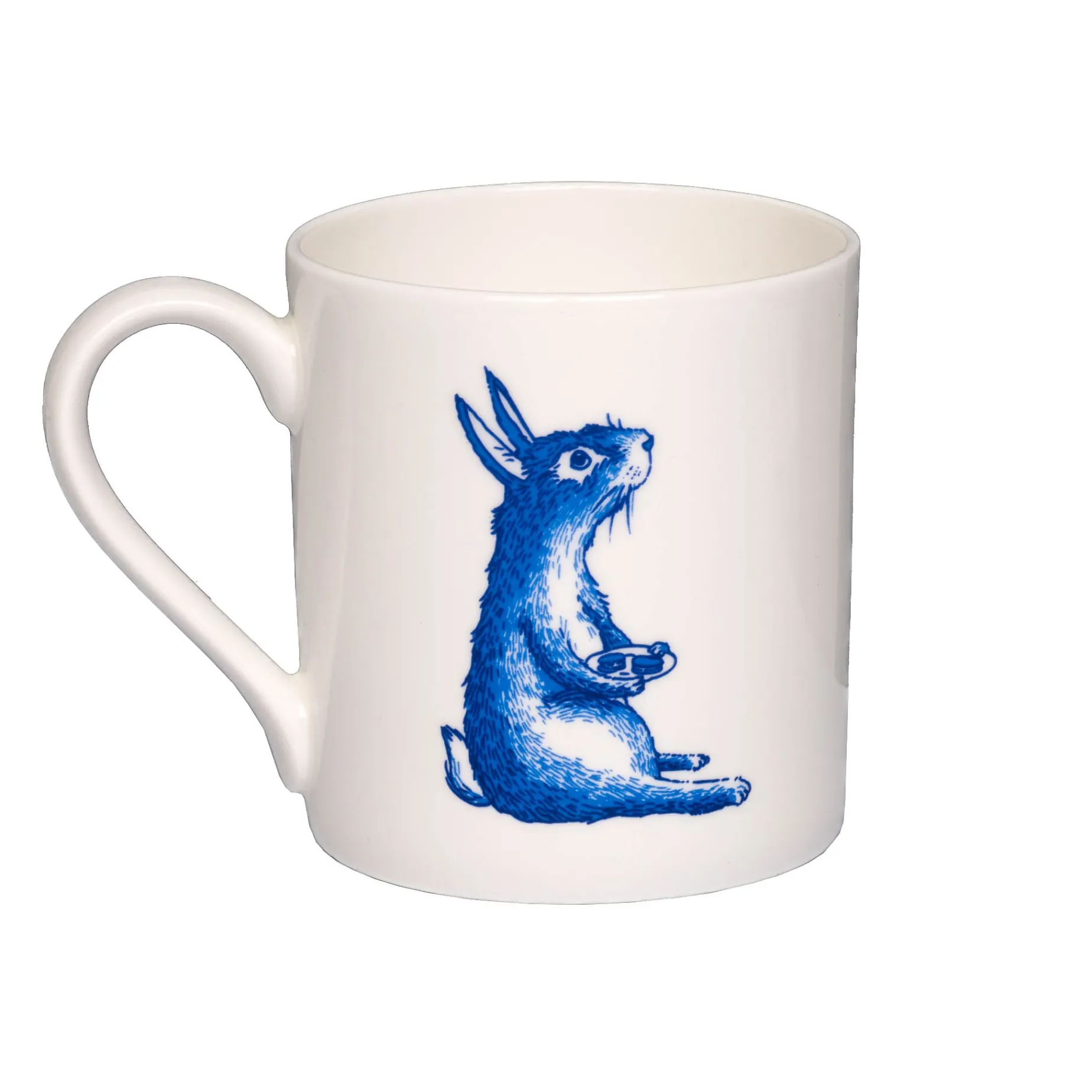 The blue rabbit with macaroons mug is a quirky addition to your bone china collection. Each cream mug features a blue, macaroon-loving rabbit on the front, and spin the mug around to see individual macaroons dotted on the back. Brighten your mornings by using this mug to serve your favourite brew, from earl grey to English breakfast. Every mug has the design applied by hand, making each piece unique.