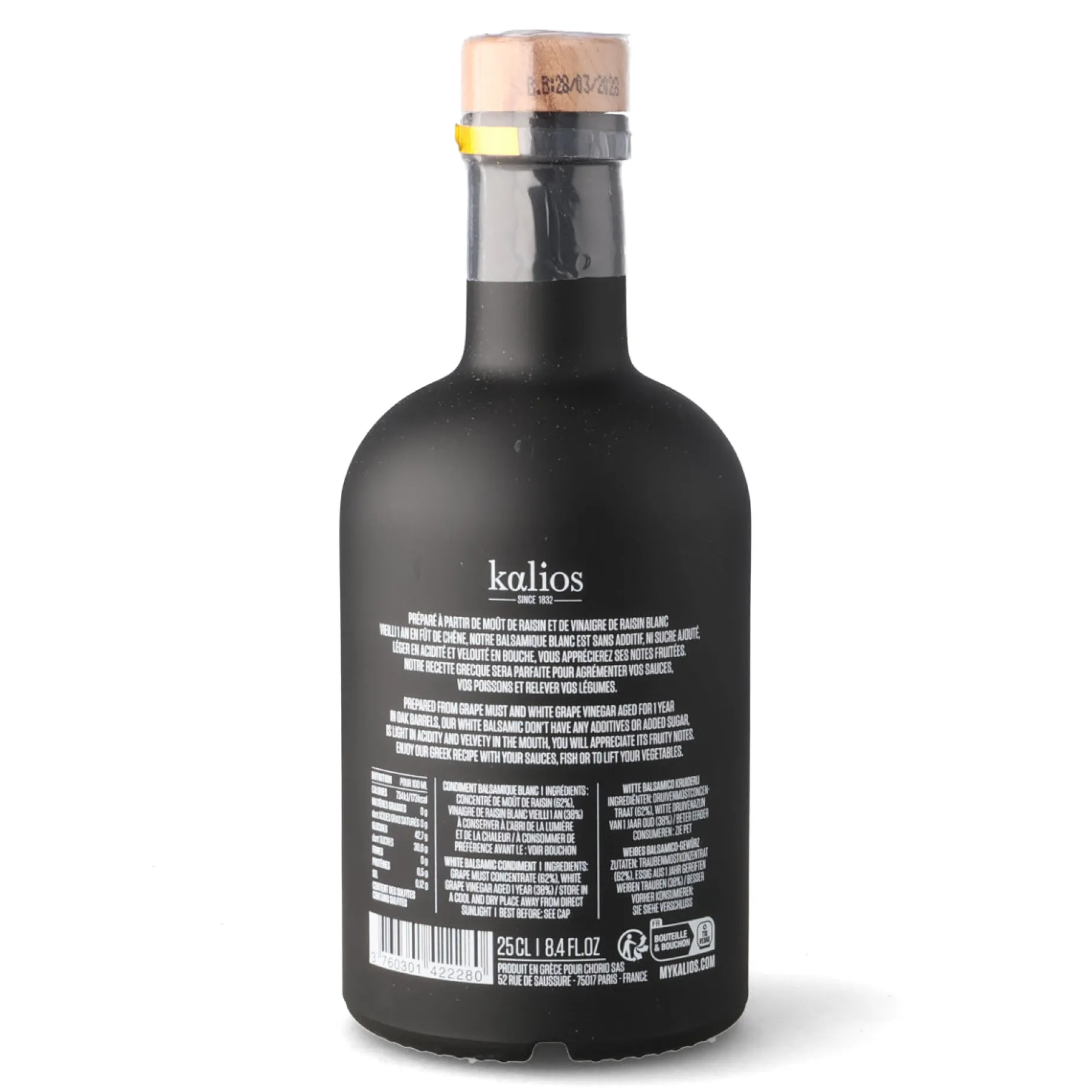 Kalios white balsamic is 100% natural. It’s made without additives or added sugar.