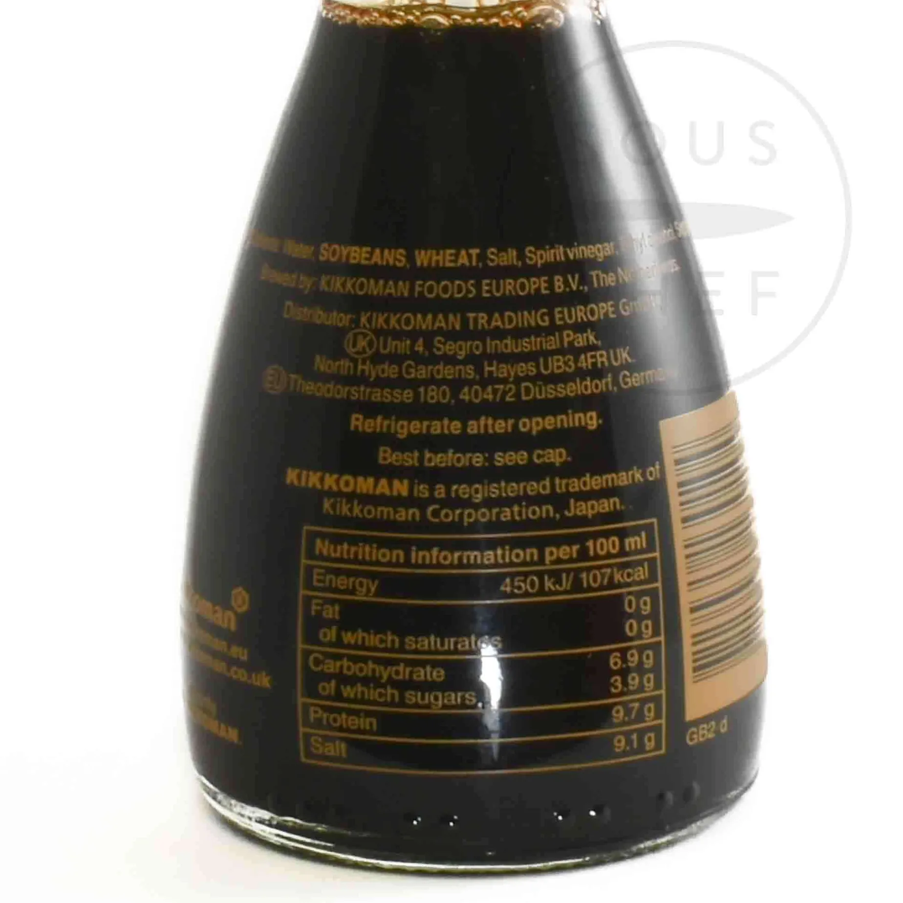 Product formulations and details may change. For the latest ingredients and allergen information always check product packaging prior to consumption. Ingredients: Water, soybeans, wheat, salt, spirit vinegar, ethyl alcohol, sugar