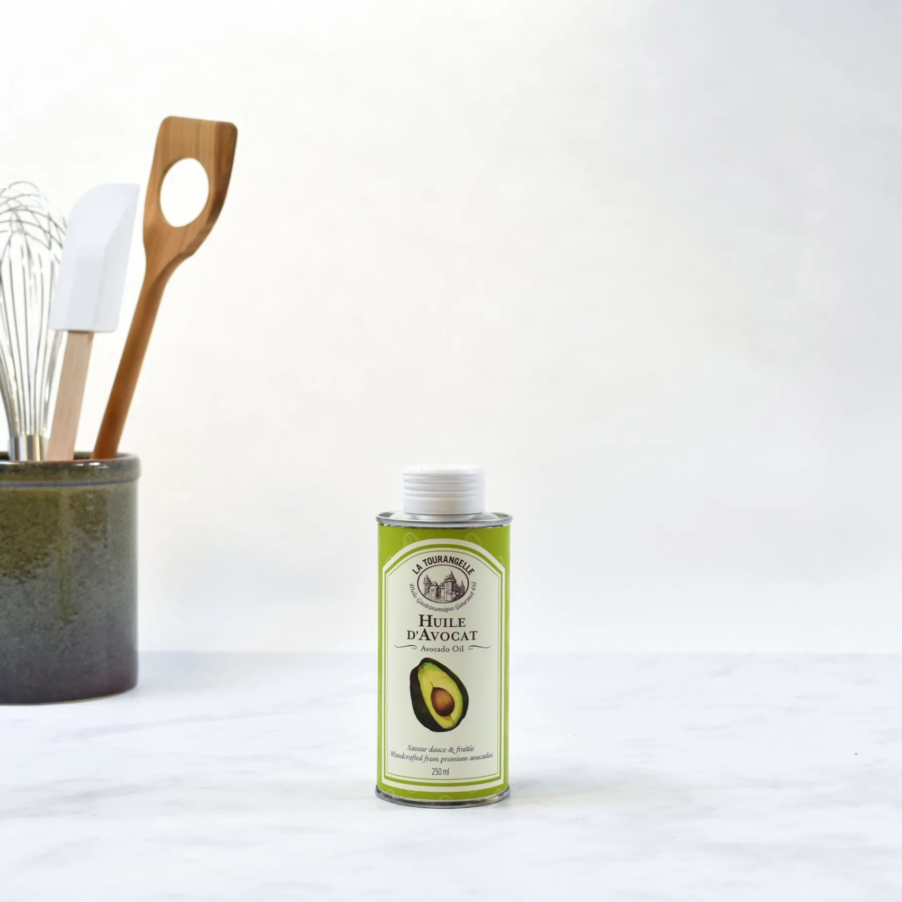 La Tourangelle avocado oil is hand crafted in the Tourangelle artisan oil mill based in the Loire Valley in France. The pure avocado oil is made from fresh pressed avocados. The beautiful emerald green oil has a high level of mono-unsaturated fats and brings a lovely light avocado flavour to dishes.