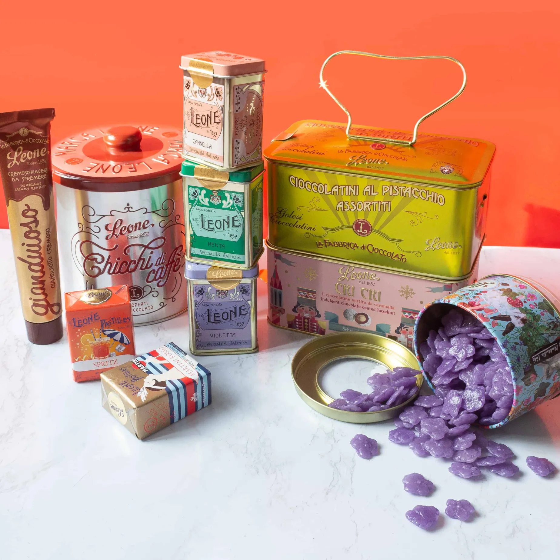 Leone has been making some of the finest sweets in Italy since 1857. Luigi Leone opened his first shop in Collegno, Piedmont to sell digestive pastilles. His mint, cinnamon and clove-flavoured delights proved so popular that before long he found himself opening a shop in Turin. His customers even included the Royal House of Savoy. Today Leone continues to make sweets using the finest Italian ingredients. They stay rooted in Luigi’s original goal: ‘to bring small moments of happiness to those who savour their products’.