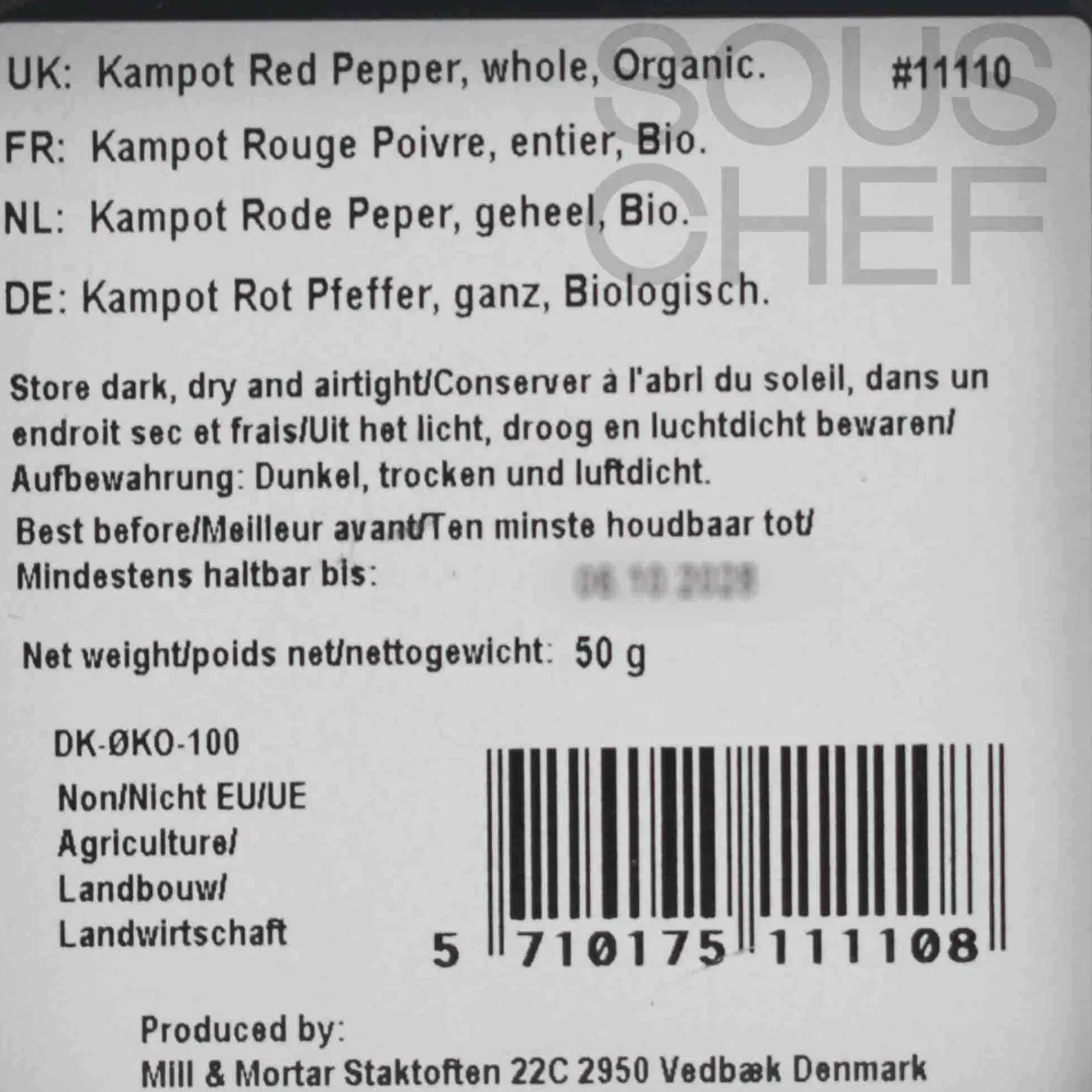 Kampot red peppercorns have a bright, fruity flavour. They are grown in the Kampot region of Cambodia and their origins can be traced back to the 13th century.