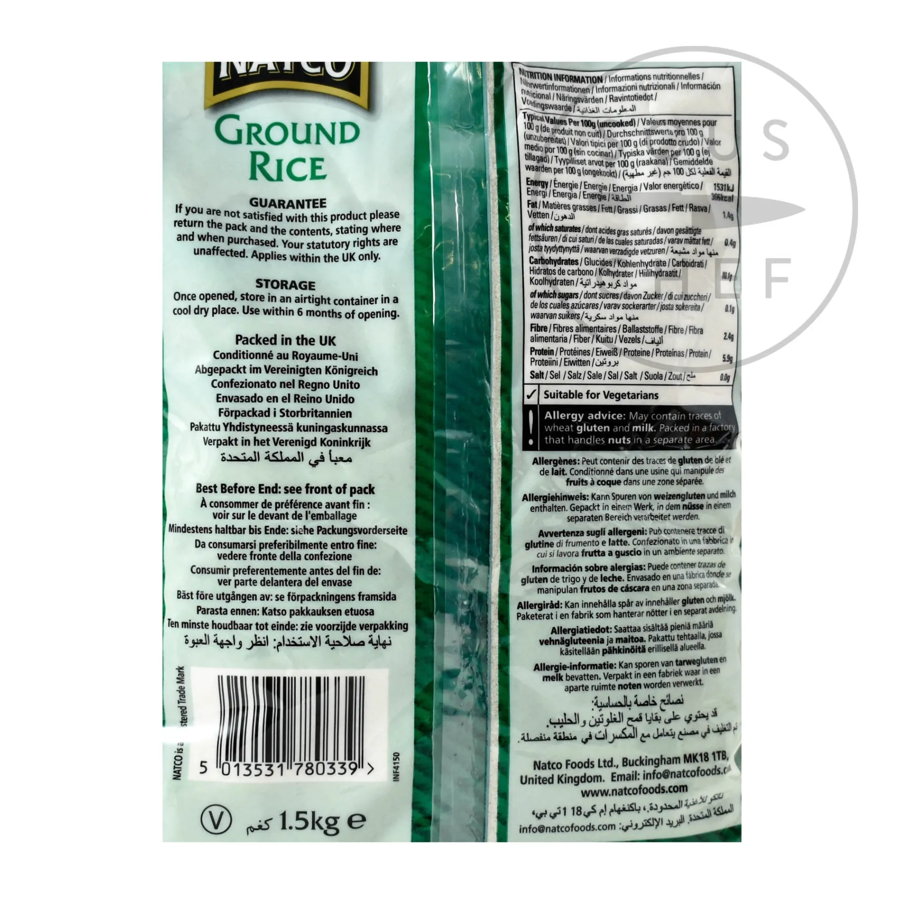 Natco ground rice is freshly milled from specially selected rice grains, and is perfect for making Indian idlis (round savoury rice cakes), dosas (large rice pancakes) or sweet puddings. The rice is milled to a fine texture which gives sponges and cakes a distinctively smooth texture. The rice works in both sweet and savoury dishes.