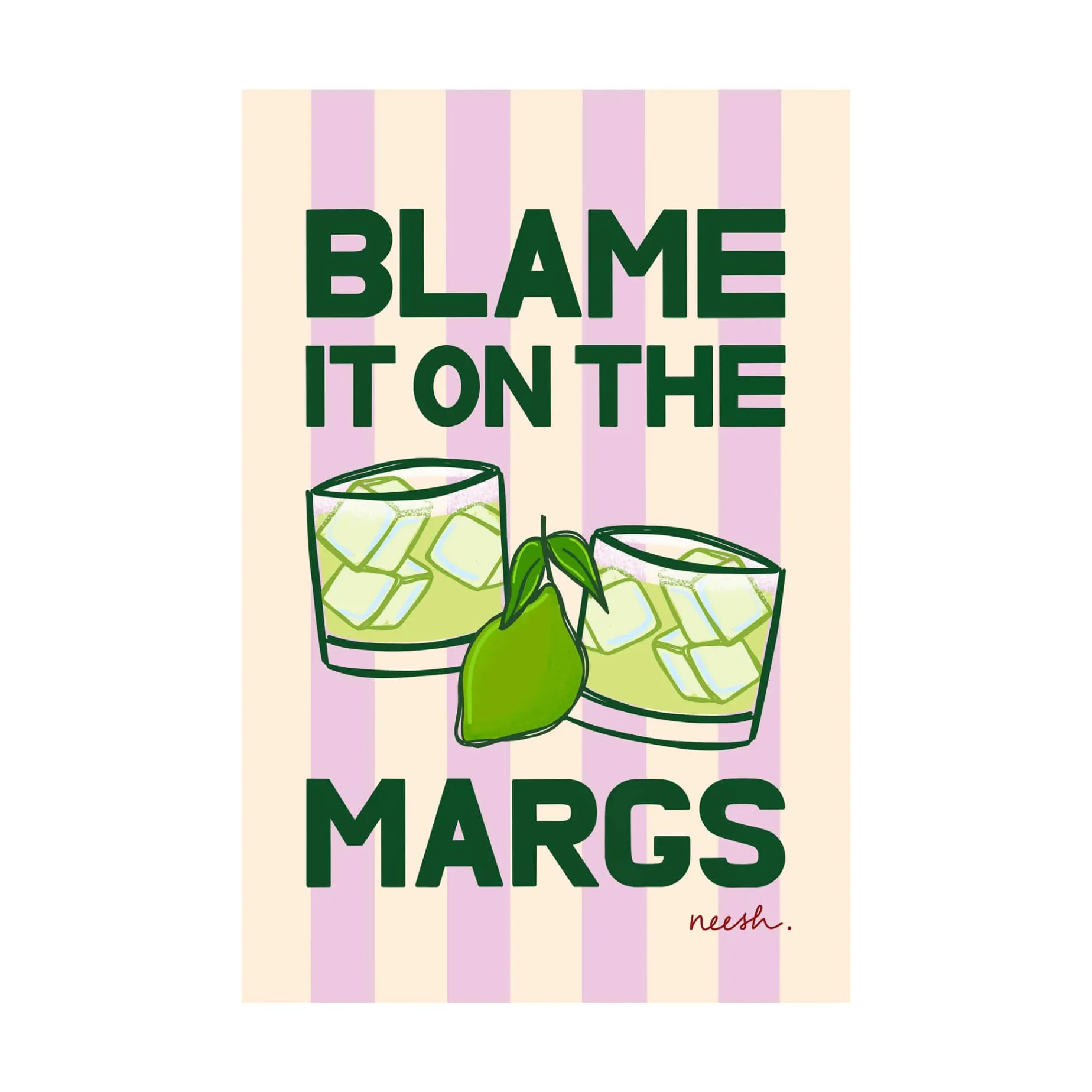Green text declares ‘blame it on the margs’ – a statement any tequila drinker can relate to!