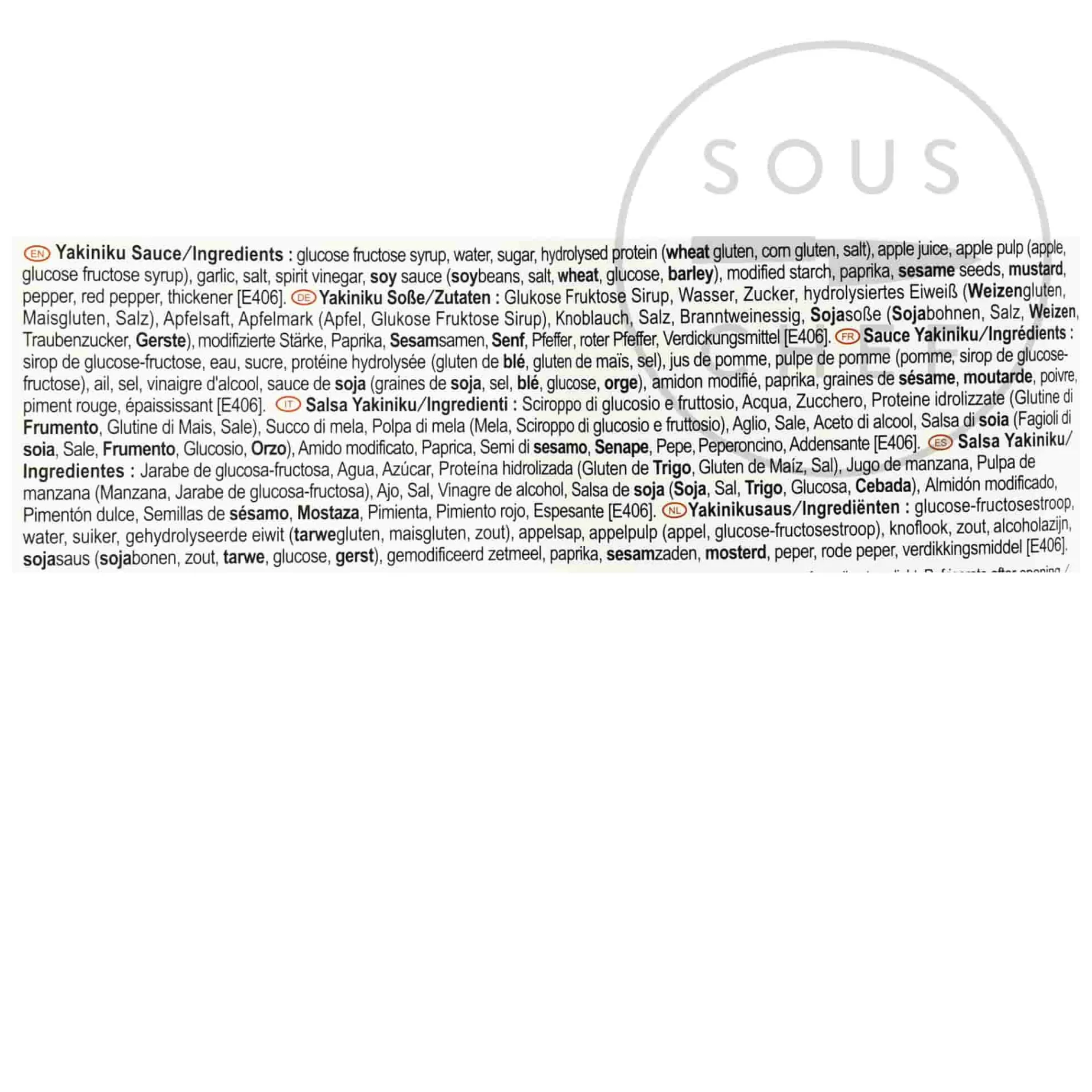 Product formulations and details may change. For the latest ingredients and allergen information always check product packaging prior to consumption. Ingredients: Soy sauce (water, wheat), sugar, fermented rice seasoning, concentrated apple juice, hydrolysed protein, vinegar (apple), stir fried onion, concentrated peach juice, vegetable oil, onion extract, garlic, concentrated lemon juice, sesame, salt, powdered garlic, yeast extract, animal fat, processed starch, seasoning (amino acids), thickener (xanthan), colourings.