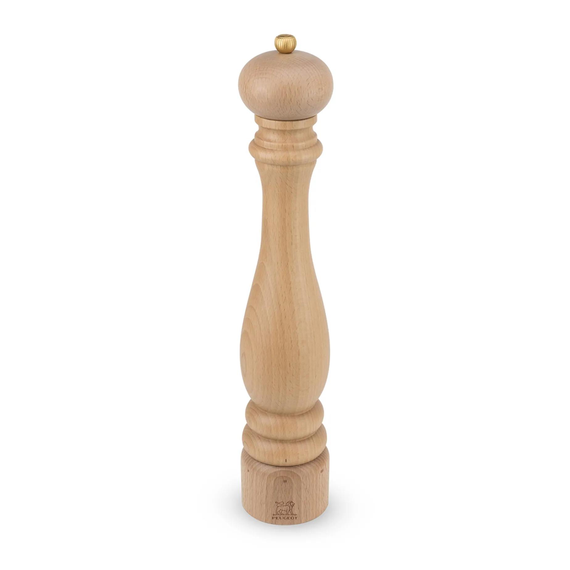 The Peugeot logo on top of the mill and the mechanism underneath will appear black to indicate that this is for pepper.