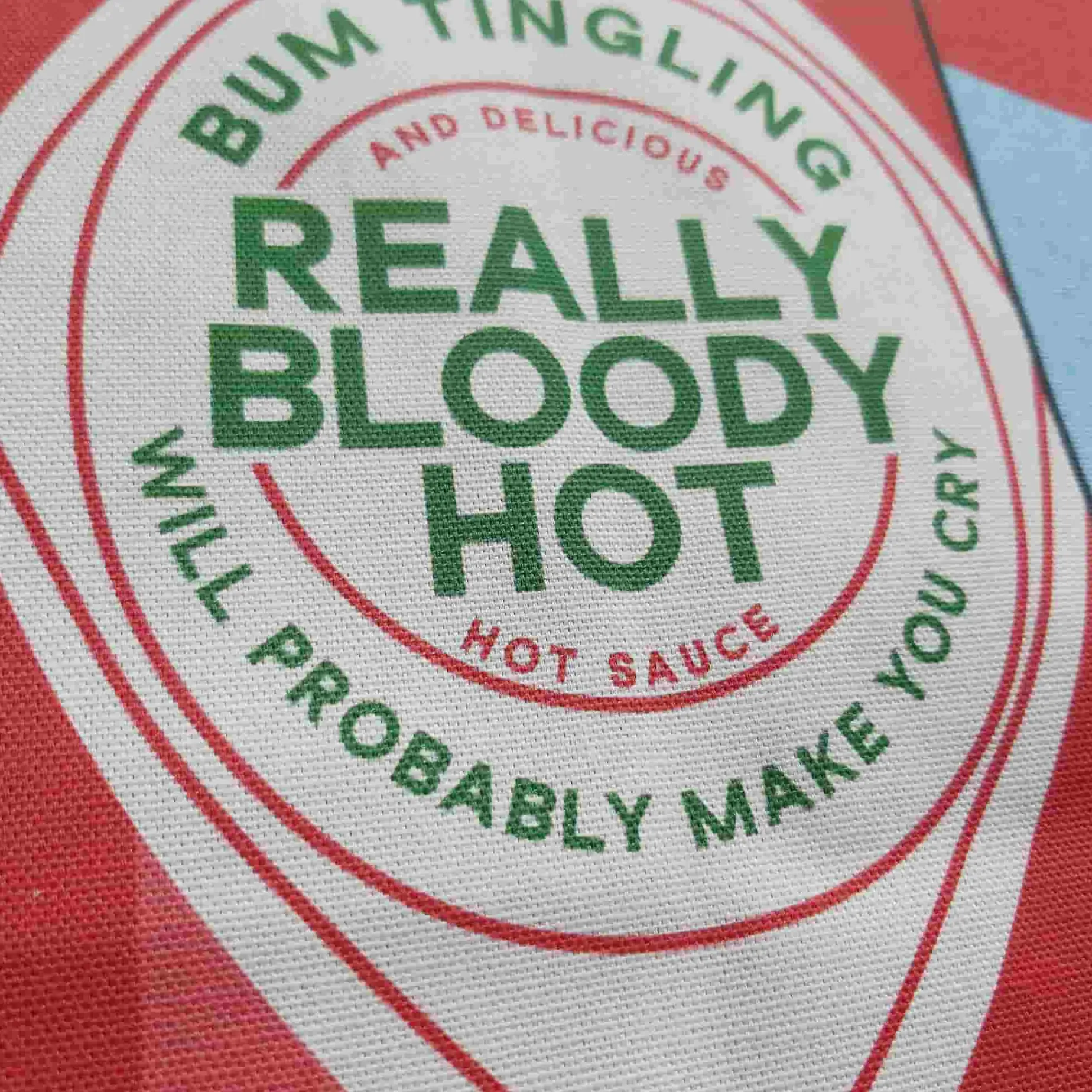 This vibrant red and blue tea towel will brighten up your kitchen and make washing up feel effortless. Designed with spice lovers in mind, it features an illustration of a Tabasco-inspired hot sauce bottle. Keep it for yourself or give it as a gift to that friend who puts hot sauce on everything!
