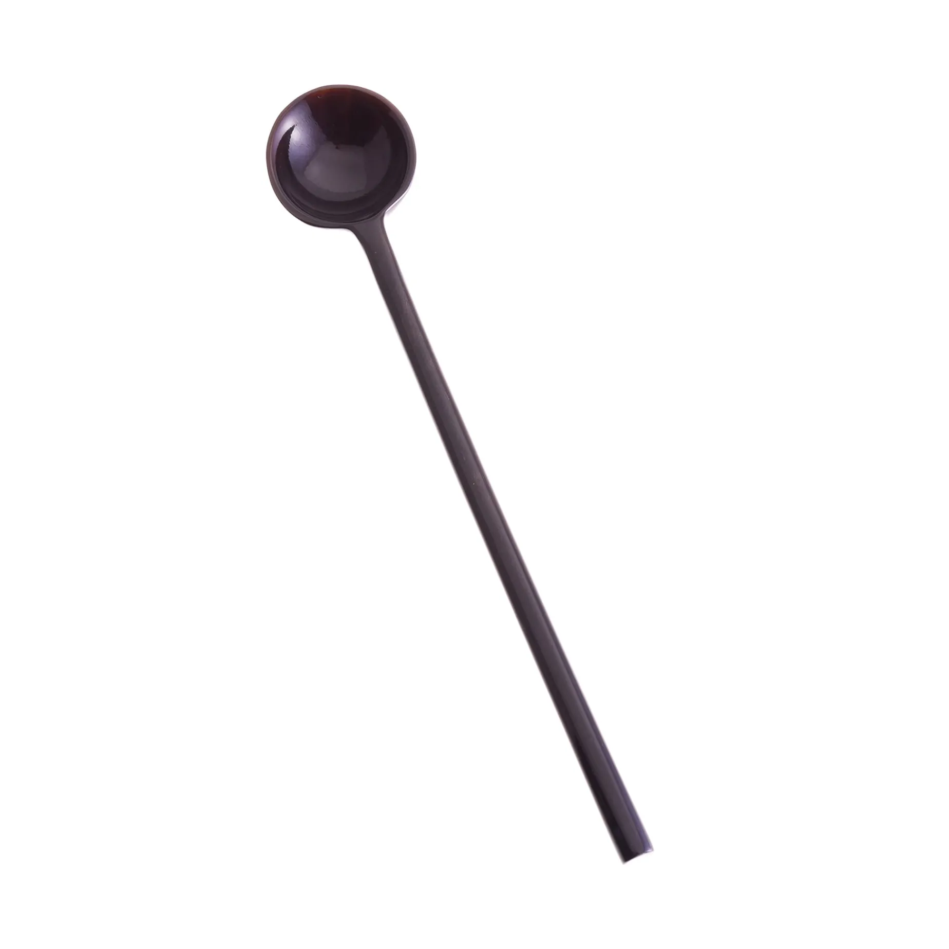 The spoon is made from polished black horn. It’s lighter than metal cutlery and gentle on your crockery.