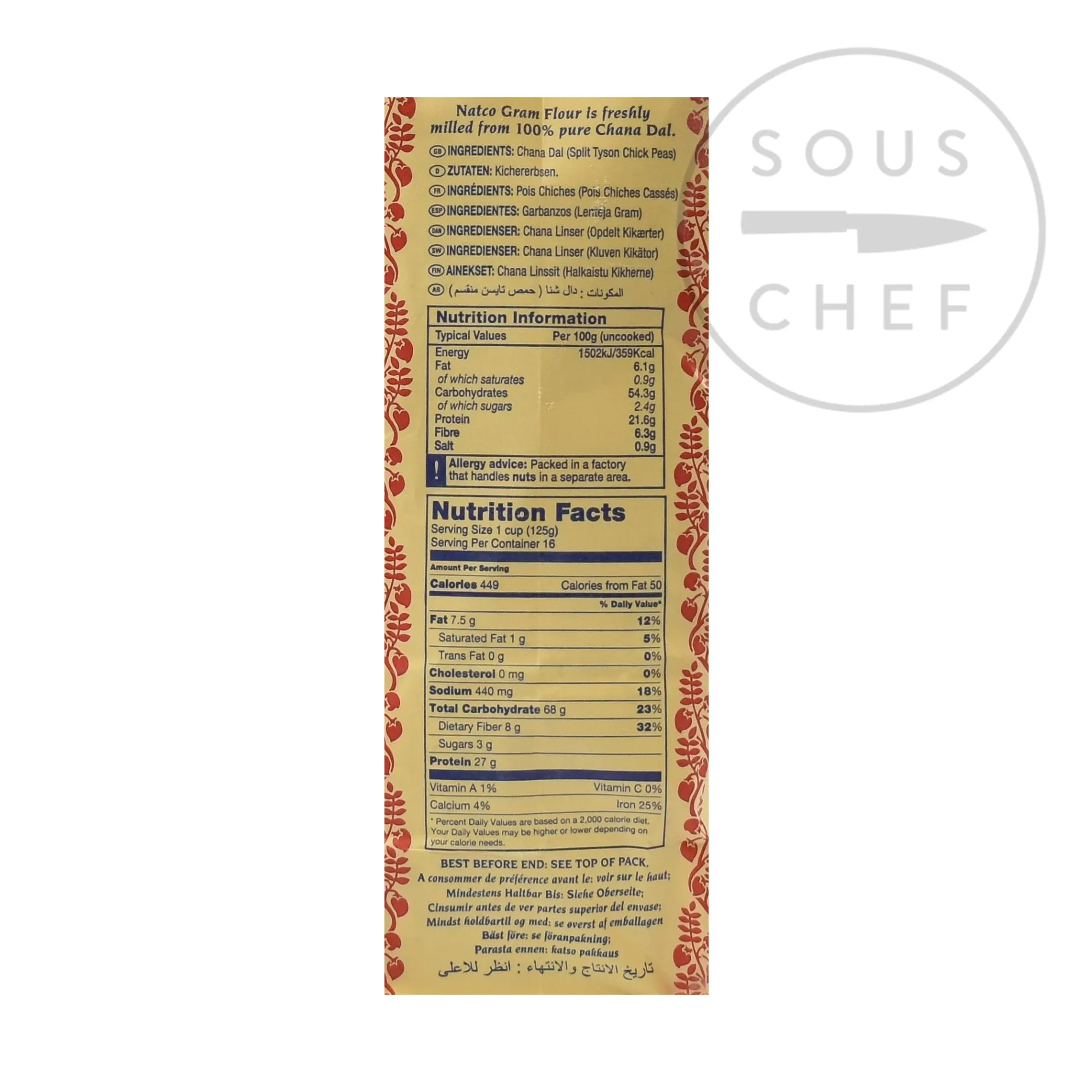 Product formulations and details may change. For the latest ingredients and allergen information always check product packaging prior to consumption. Ingredients: 100% pure Chana Dall (yellow gram)