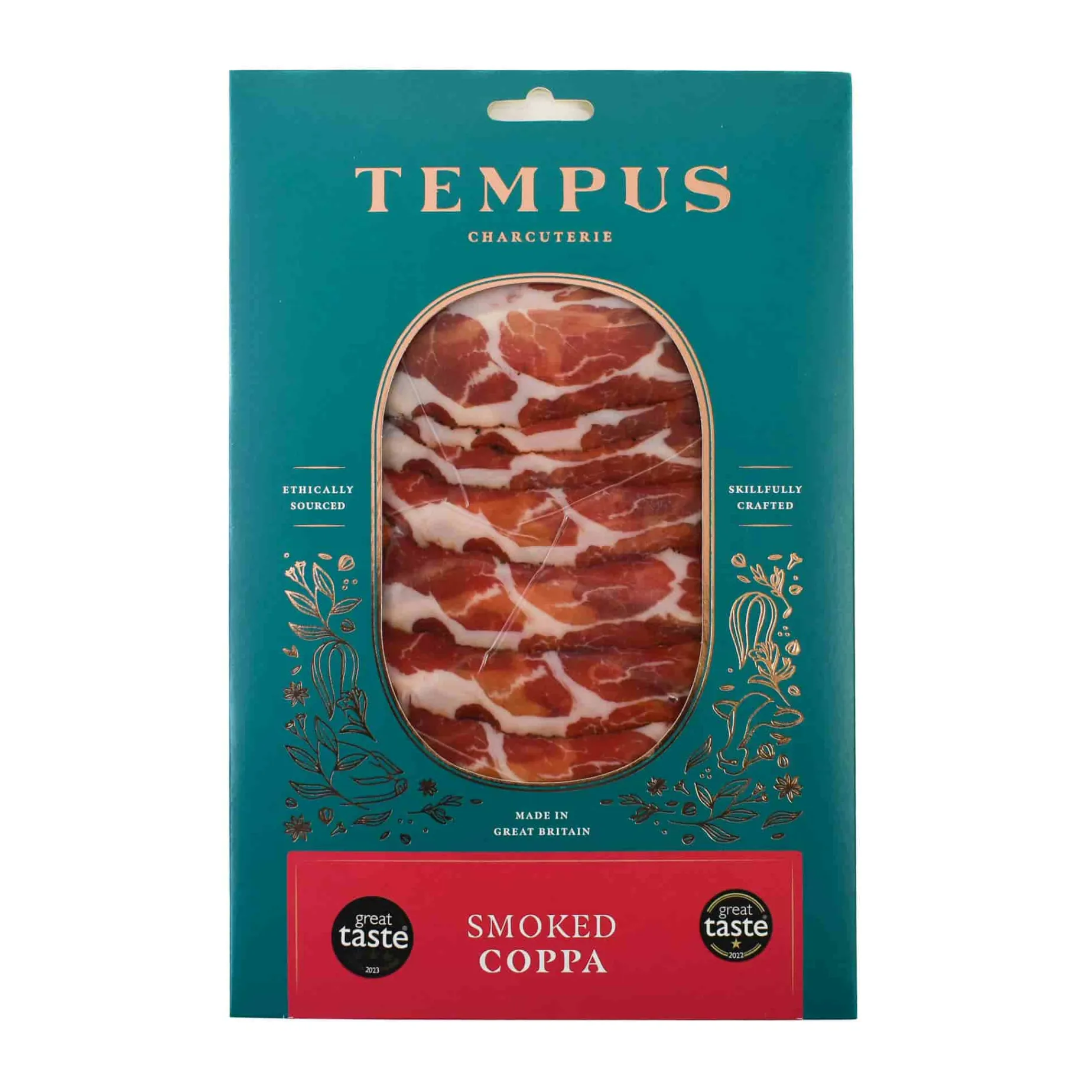 The smoked coppa is flavoured simply with black pepper to allow the flavour of the pork to take centre stage. Tempus recommends pairing it with off-dry Rieslings, stouts and sherries.