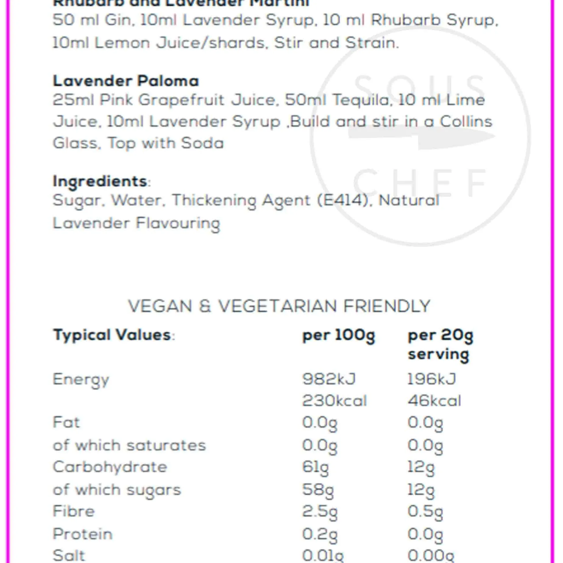 Product formulations and details may change. For the latest ingredients and allergen information always check product packaging prior to consumption. Ingredients: Sugar, water, emulsifier: acacia gum (E414), flavourings: natural lavender flavouring